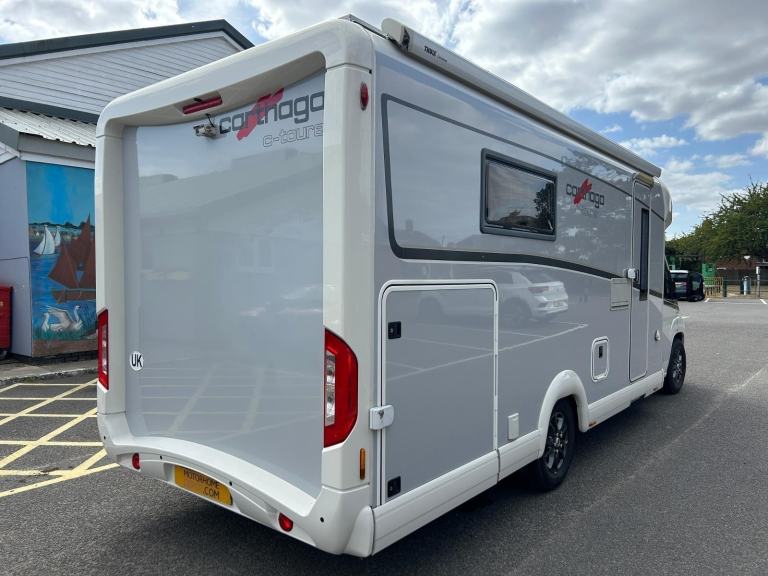 - HABITATION CHECKED AUGUST 2025- ISLAND BED- HUGE GARAGE- SELF SEEKING SATELLITE DISH- SOLAR PANEL- FREE MOTORHOME COVER INCLUDED- ONLY 1 OWNER- 2 X GASLOW REFILLABLE BOTTLES- CAB AIR CON- REVERSING CAMERA- ALARM- WIND OUT AWNING- 2 SWIVEL SEATS- LARGE SEPARATE SHOWER- REVERSING SENSORS- SOG SYSTEM- FULLY WINTERISED- RADIO /CD /MP3 PLAYER- SPARE WHEEL- CRUISE CONTROL- 2 BERTH, 4 SEAT BELTS-LENGTH 7.4 METRES- AVAILABLE TO VIEW IN ROWHEDGE, NEAR COLCHESTERWe are delighted to present for sale this beautifully presented 2016 Carthago C-Tourer T150, a premium 2 berth motorhome with 4 seat belts, built on the renowned Fiat Ducato chassis and powered by the strong yet economical 2.3L engine. With just one careful owner and only 35,749 miles covered, this motorhome is in superb condition and ready for new adventures. Measuring 7.4 metres in length, it offers both comfort and practicality, making it the perfect choice for couples who want to travel in style. It had a habitation check in August 2025 which it passed with flying colours.Inside, the layout is both luxurious and highly functional. The highlight is the ever-desirable island bed, giving you easy access on both sides so there’s no climbing over each other during the night. A cleverly designed split washroom provides maximum convenience, with a large separate shower on one side and a Thetford cassette toilet, wash basin with mixer tap, and plenty of mirrors and storage on the other. The mid-kitchen is well-equipped with a 3-burner gas hob, stainless steel sink, and a large automatic fridge freezer, making meal preparation on the road a pleasure.The spacious lounge area is ideal for relaxing or entertaining, with a multi-directional dining table and seating for up to six people. Two additional forward-facing travel seats are fitted with seat belts, allowing up to four passengers to travel safely and comfortably. 2 swivel cab seats enhance the lounge space, while large windows ensure a bright and airy atmosphere.This Carthago comes with a wealth of extras to make life on the road effortless. A self-seeking satellite dish and radio/CD/MP3 player keep you entertained, while cab air conditioning, cruise control, and a reversing camera and sensors make driving a joy. Practical fetures such as a huge garage, wind-out awning, solar panel, and two Gaslow refillable bottles (saving you up to 70% on gas costs) add real value. It also features a SOG system to eliminate toilet odours, an alarm for security, a spare wheel, and it’s fully winterised, meaning it’s ready for year-round touring. To top it off, a free motorhome cover is included.This is a rare opportunity to own a high-quality, low-mileage Carthago motorhome that has been cherished by its single owner. Available to view now in Rowhedge, near Colchester.To see a more comprehensive file of photographs and a walk round video please call Mark on [Phone number removed].I can offer free 31 days fully comprehensive drive away insurance with this Motorhome.*Finance, part exchange and warranty options available *