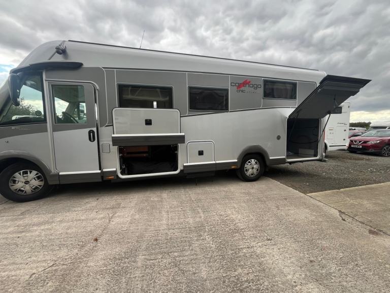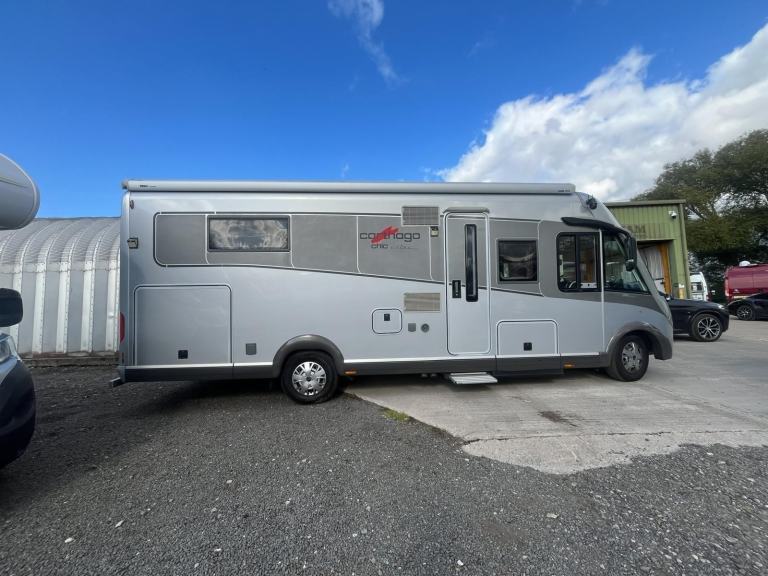 Cathargo 51 QB Chic E-line Yachting Edition arrived today [Phone number removed]miles ,cab and Habitation air conditioning , Glide Rite air suspension , twin solar panel and dual lithium battery's , has super package fitted with loads of factory extras we have to go through all the paperwork to fully understand this outstanding motorhome, one owner from new and with us for viewing by appointment at our new premises near Pontefract West Yorkshire.Wind out Rose awning canopy with full side curtains included.Viewing by appointment at our new premises Near Pontefract WF8 3EQ.Please note, we offer to anyone who is interested in buying this motorhome the opportunity to place a refundable £500 holding deposit, which in effect holds the vehicle ‘off sale’ and prevents any further viewings or sale taking place until you have completed a viewing and you have decided whether to proceed with the sale, if not, you are refunded the full amount, in line with current UK legislation.