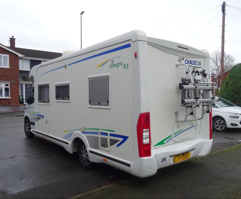 For sale Chausson Allegro 83, 4-berth, 4 seat belt low-profile motorhome, built on a Renault Master chassis with a 3.0L diesel engine. Fitted with air suspension for extra stability and comfort, cruise control, cab A/C top of the range bike rack, TV and a rear fixed "French" bed. Key Features: Layout: Rear fixed corner French bed with storage underneath, front lounge/dinette area that converts into a second double bed, and a corner washroom. Berths & Belts: 4 berths and 4 travelling seat belts. Engine & Chassis: Powered by the Renault Master 3.0L dCi (140 bhp) with a 6-speed manual gearbox. Kitchen & Washroom: Mid-side kitchen equipped with a 3-burner hob, oven/grill, large fridge with separate freezer, and sink. The washroom includes a Thetford cassette toilet, vanity sink, and shower. Heating & Utilities: Truma gas heating and hot water system. Upgrades: Wind-out awning, bike rack, reversing camera, solar panel, TV aerial / Satelite, cab air conditioning, and air suspension. Dimensions & Weight: Length is approximately 6.95m with a GVW of 3850kg. C1 licence needed. Top of the range model suitable for long-term UK or European touring. This vehicle is located in Willenhall West Midlands–please contact Rob for the extended photo-file and video. Viewing is by appointment only. Closed Sundays and bank holidays. Please note, we offer anyone who is very interested in buying this motorhome the opportunity to place a refundable £500 holding deposit, which in effect holds the vehicle ‘off sale’ for you and prevents any further viewings or a sale until you have completed a viewing.If, after you have viewed it, you decide that this motorhome is not for you, we will refund you the full amount in line with current UK legislation. Looking to drive away on the same day, why not take advantage of our free one month drive away insurance. Please ask for details.