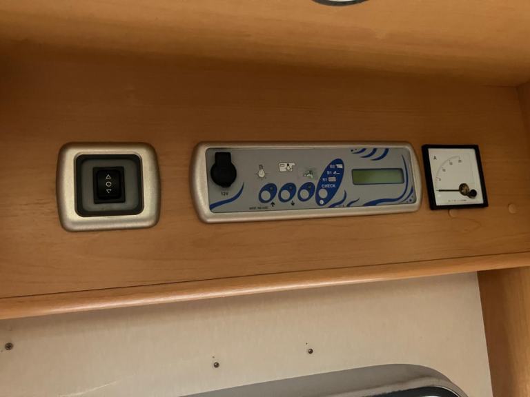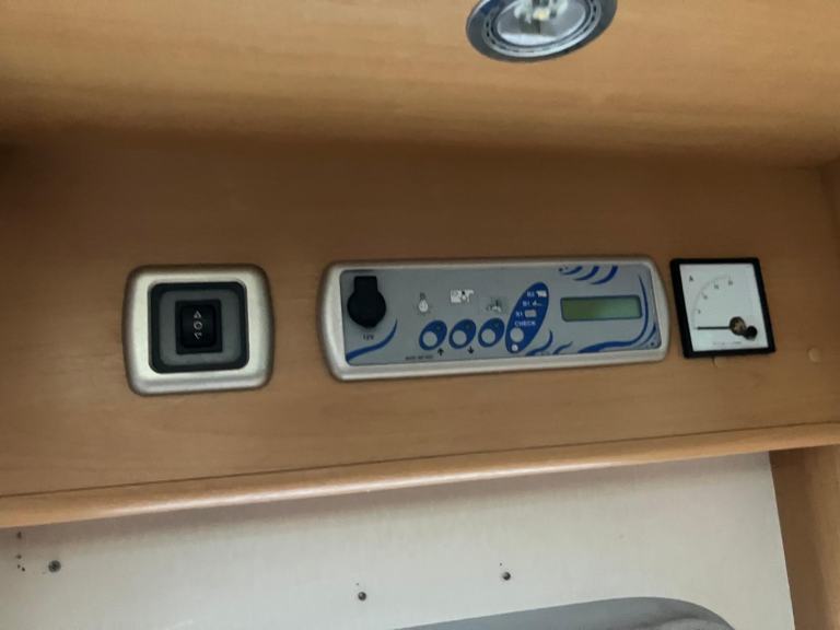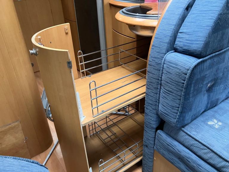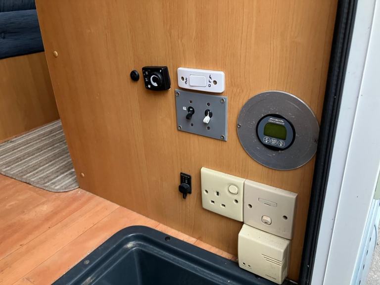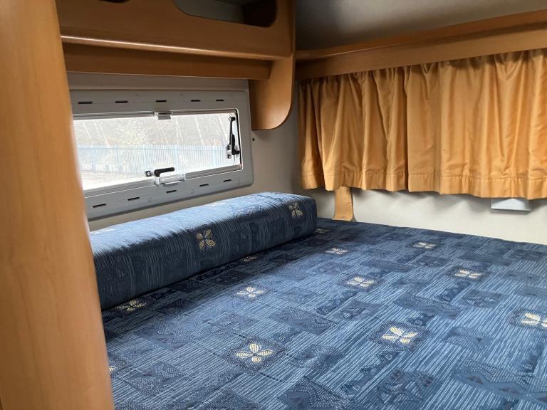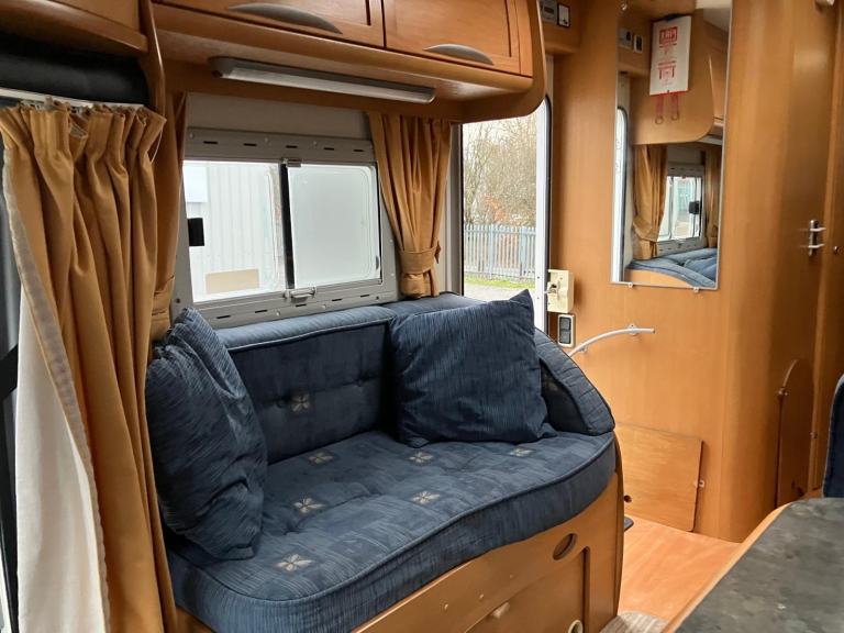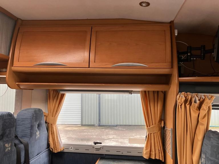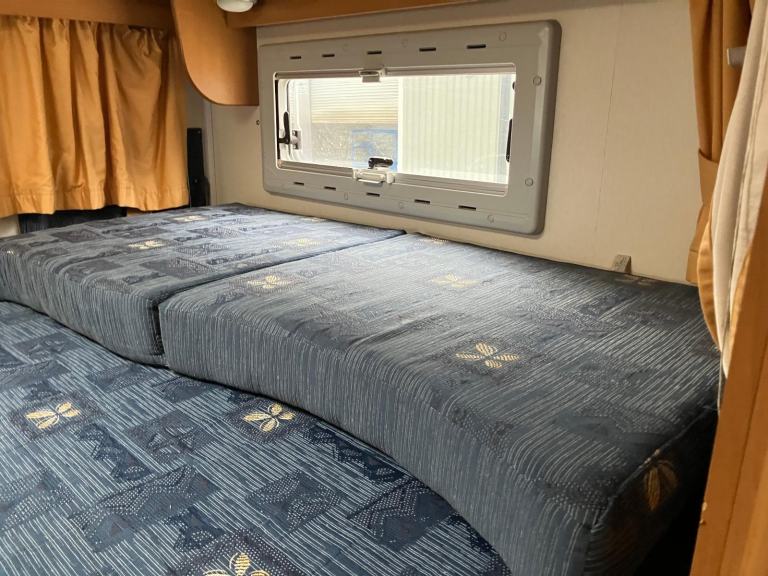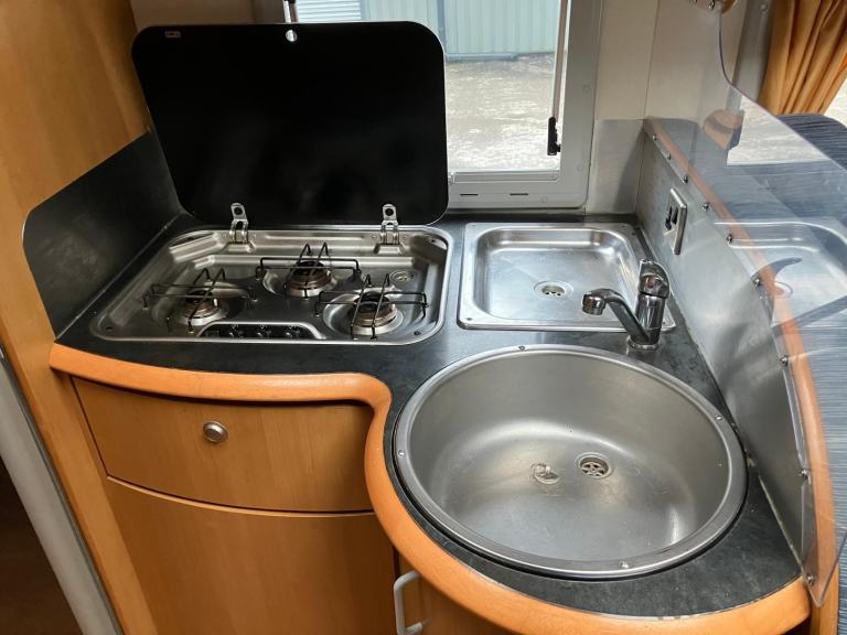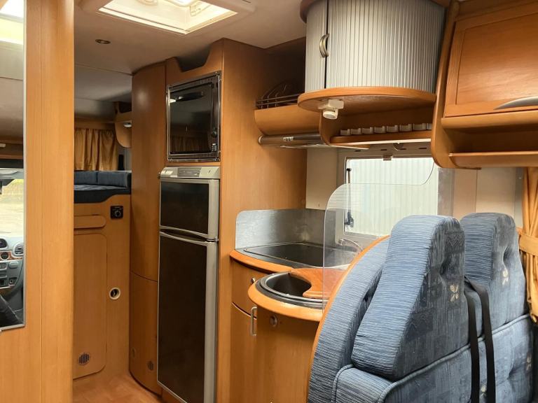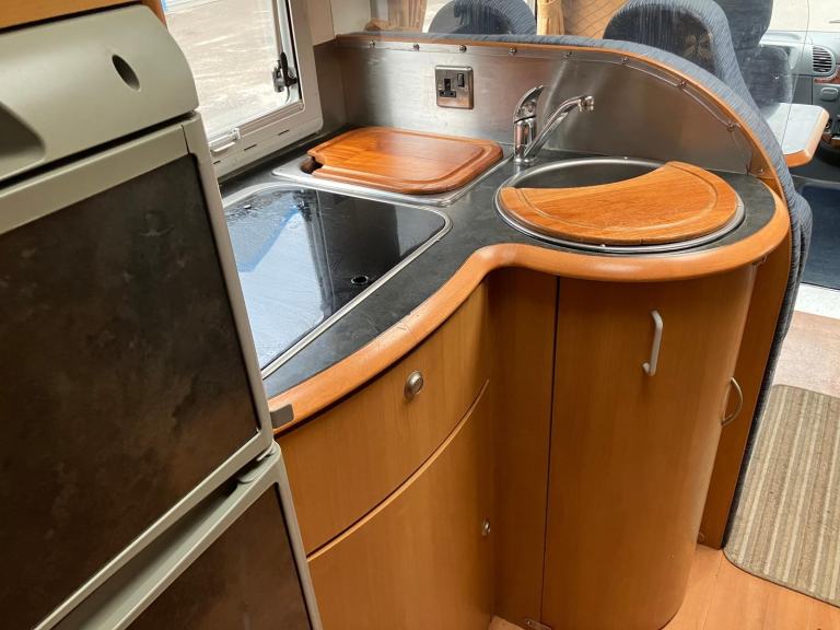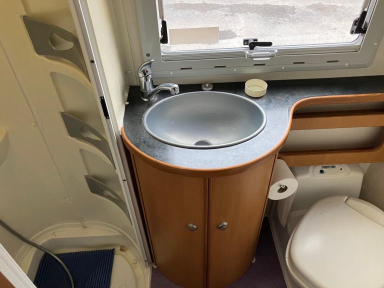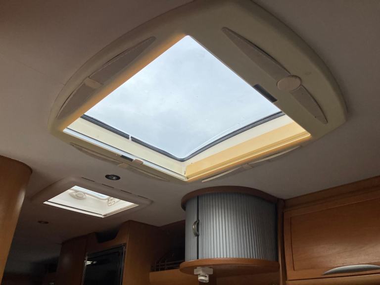 Sunroof; Central Heating; TV Aerial; Fixed Double Bed; Cooker; Air Conditioning; Back Seat Safety Belts; 12V Lighting; Central Seating Group; V5 Registration Document; Blinds; Grill; Anti-Lock Brakes (ABS); Awning; Mains Hookup; Separate Shower; Solar System; Oven; Sink; AM/FM Stereo; Driver Airbag; Hand Washbasin; Round Seating Group