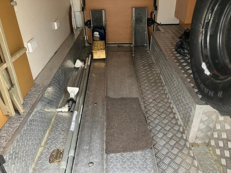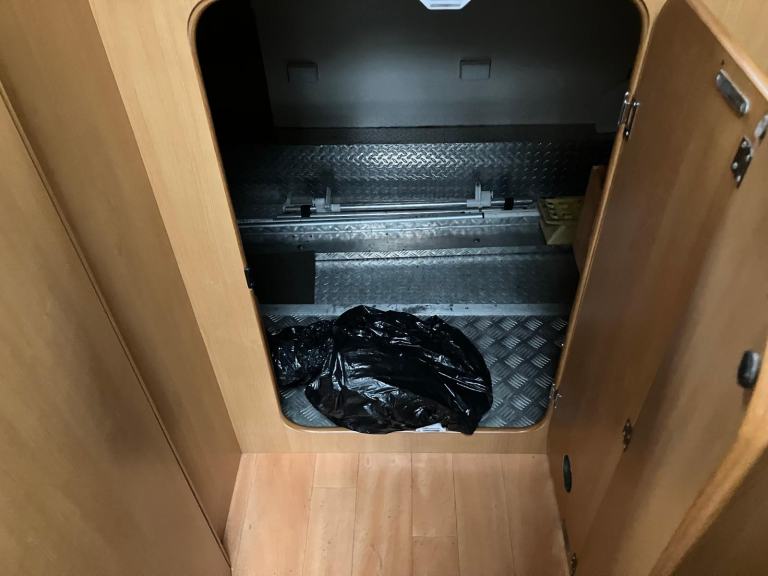 Below the double bed is a large garage, accessed from under the bed and 2 outside openings