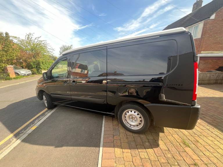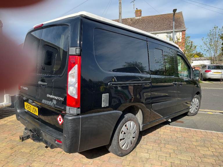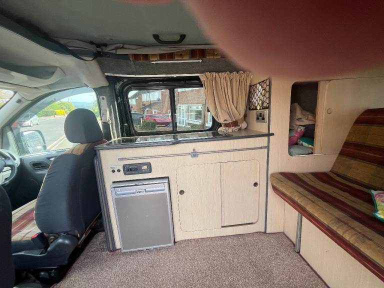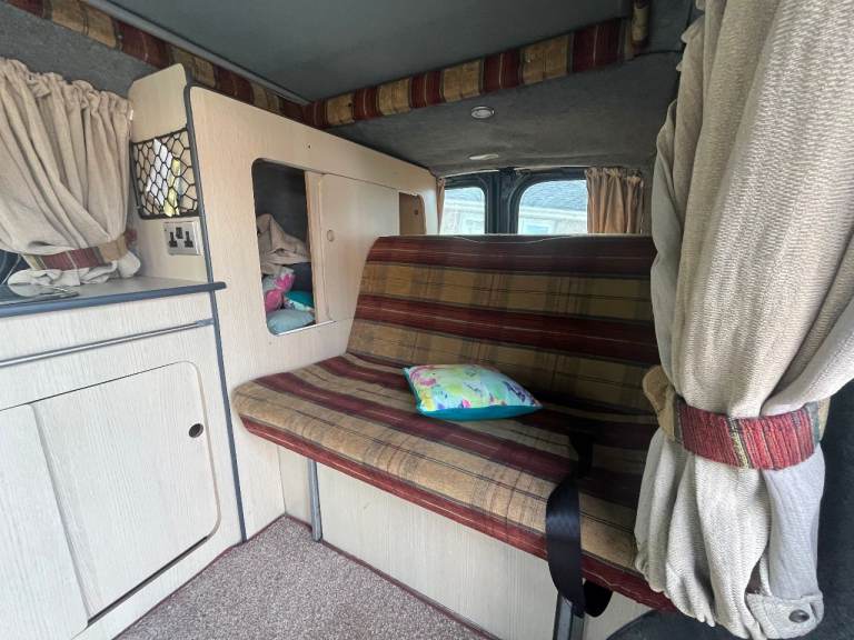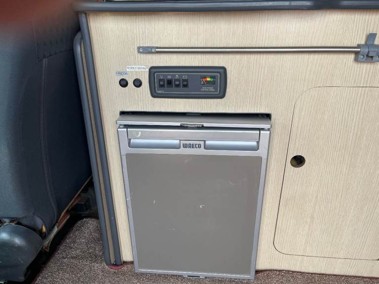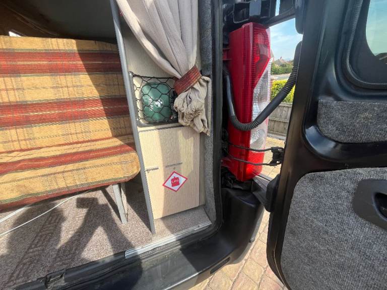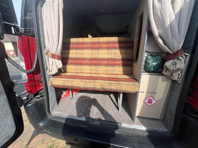 Little used 2 birth Camper van in Black. Has 4 belted seats. The Camper has good bodywork and excellent engine/transmission with 6 speeds. It has an elevating roof which takes about 5 mins to raise. Internally there is a "rock and Roll" pull out bed. Facilities include a fridge, Gas and 12V. A 2 Burner hob. There is also an auxiliary battery providing 240v ac, internal led lights. External 240vac input provides charging of aux battery.