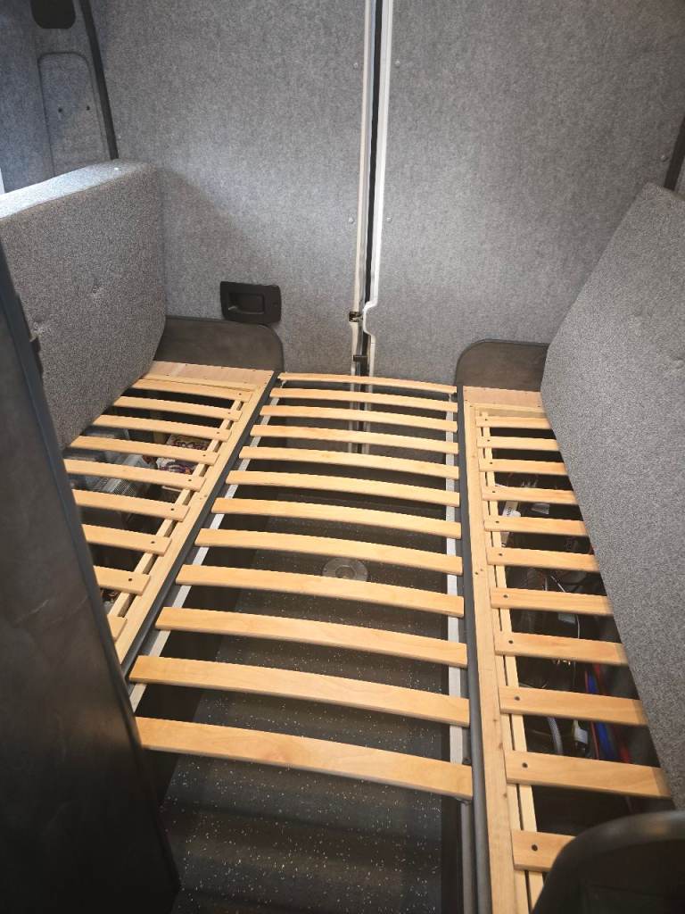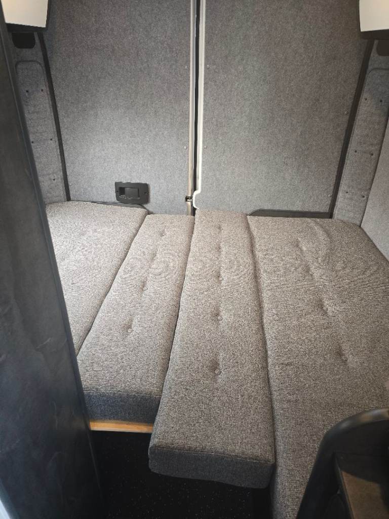 I have done the back as 2 bench seats that convert to a spacious comfy double bed, the front has a bench seat with storage underneath, turn drivers seat around and this makes a single bed.