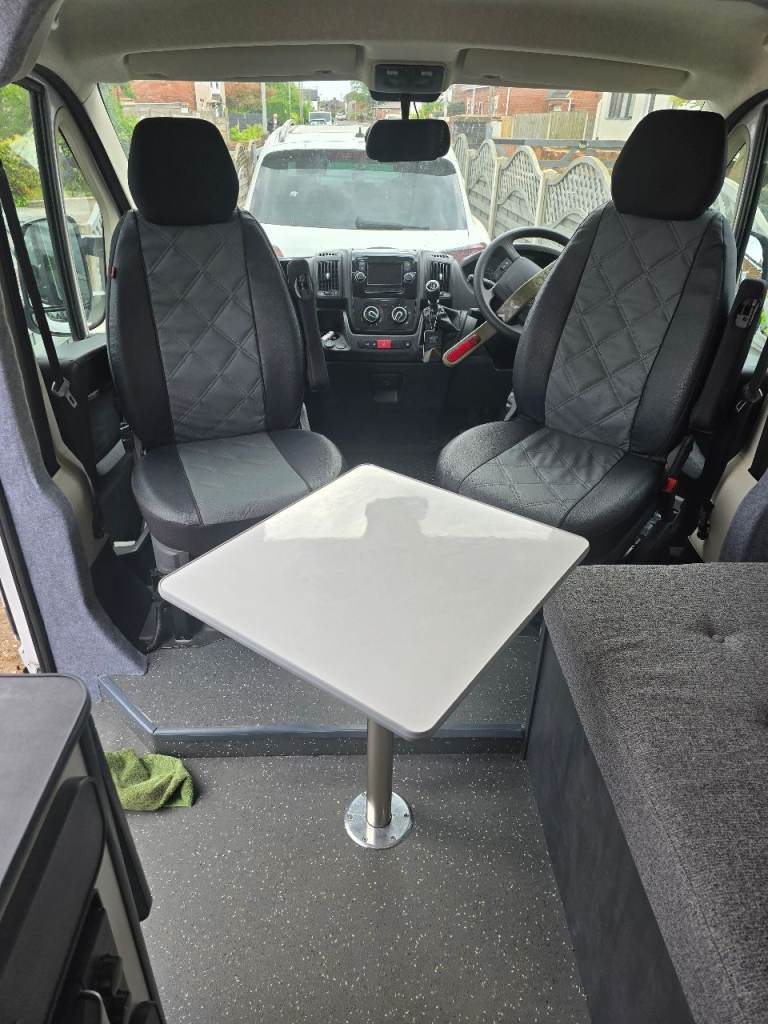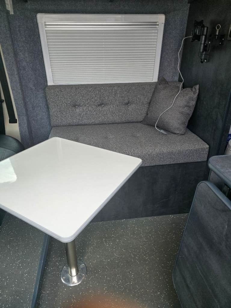 Fully insulated with dodo deadn, dodo mat liner and dodo fleece, curved autotrail doors, slate grey furniture board, 12v fridge, 240v microwave, 130ah battery, 10 way fuse board for 12v lighting etc, 240v mini consumer box, renogy 20 amp dc to dc charger