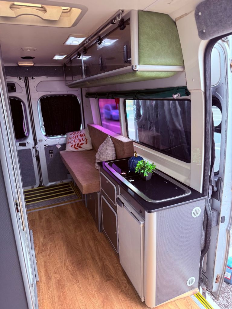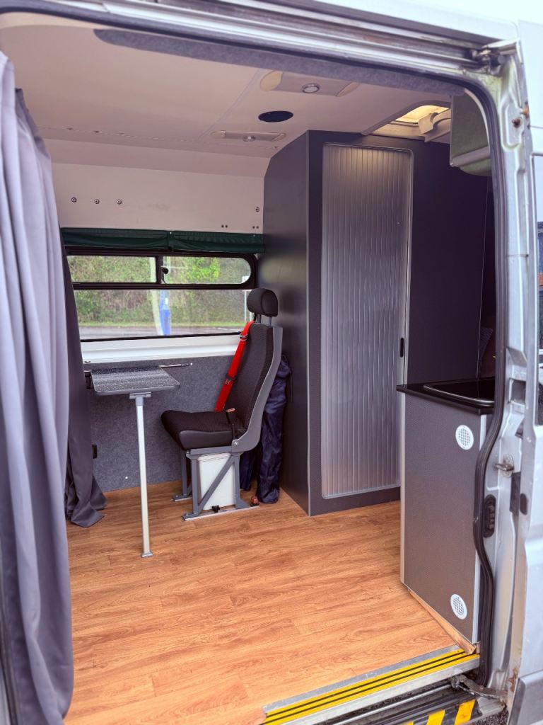 The van has undergone a professional camper conversion roughly 2 years ago and has been used twice since for 2 small weekend trips. Reason for sale is not having the time to use it. It started it’s life as a disability transport vehicle and was converted in my ownership thereafter.