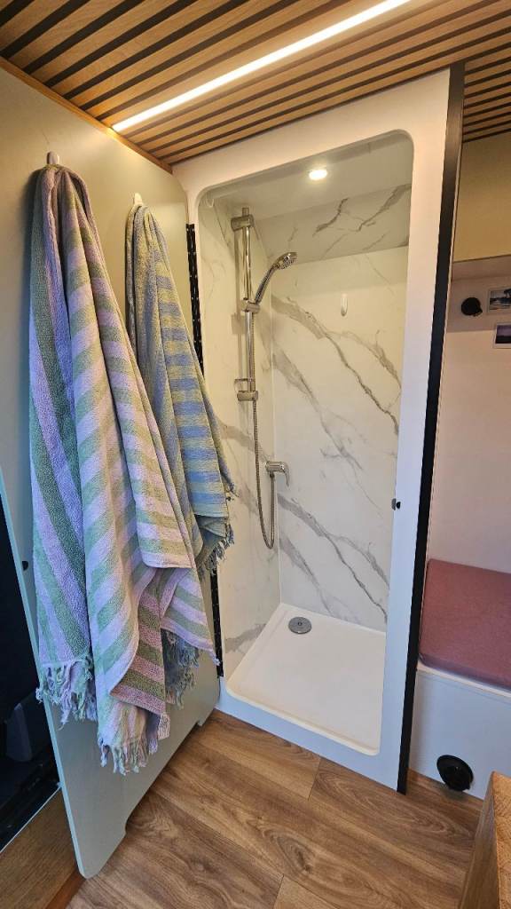 A well-equipped, insulated campervan built for comfortable off-grid travel in the UK and Europe. This is a self-contained camper with hot water, an internal shower, fixed double bed, large water tanks, and a reliable Victron electrical system — ideal for long trips, full-time use, or weekends away.