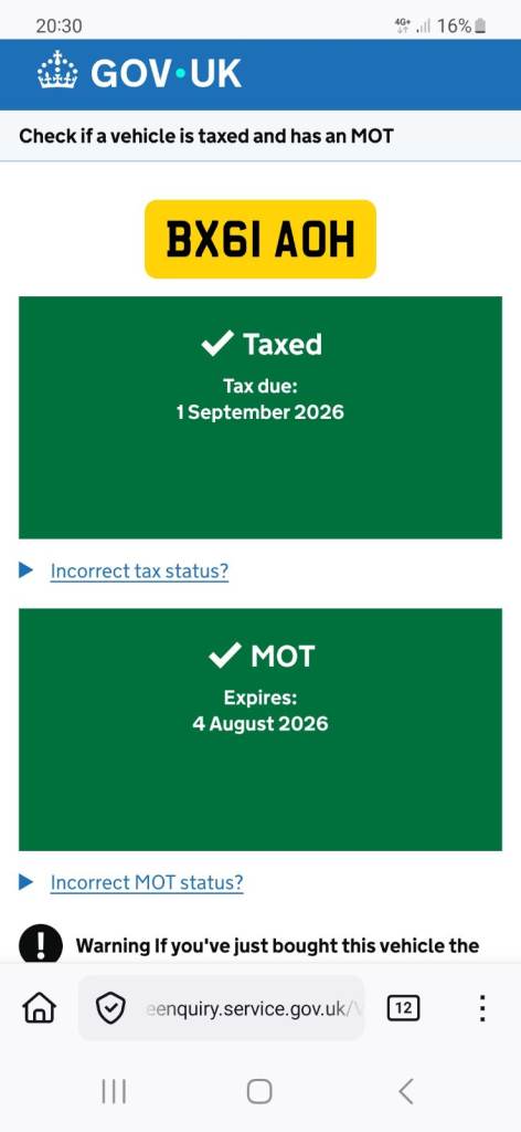 This vehicle has not been reported stolen, scrapped, exported or flagged as unroadworthy.
