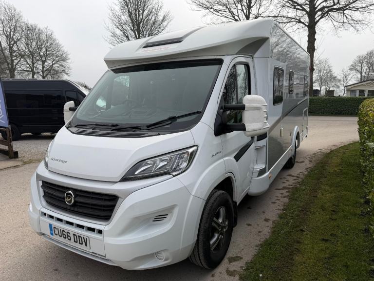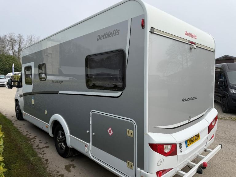 Welcome to the sale of this great example of a 2016 Dethleffs Advantage T7051 EB motorhome built to give a little more space and comfort. It is a 3 berth, 4 belted motorhome with the low rear single bed layout or king Size Bed. The motorhome is based on a 2.3 litre turbo charged, 150bhp, Euro 6 diesel engine with a manual 6 speed gearbox. This motorhome has been upgraded to a max load limit of 3850, to give a payload of around 800kgs, but it can be easily down-plated to 3500kg to allow for ordinary driving licence. Along with cab air con it has cruise control, entertainment system, blinds, reversing camera, tracker and swivel captains chairs.