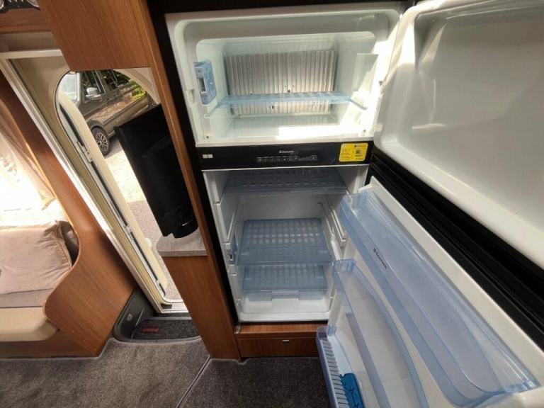 Joining on from the main living area is a well-equipped kitchen area that features a tall fridge with separate freezer; sink; cooking hobs; combi oven/grill and large, deep soft-close utensil draws. An abundance of additional storage is dotted around too – multiple underfloor compartments, surrounding cupboards, wardrobes, under benches and a huge rear garage will guarantee all of your storage needs are met.