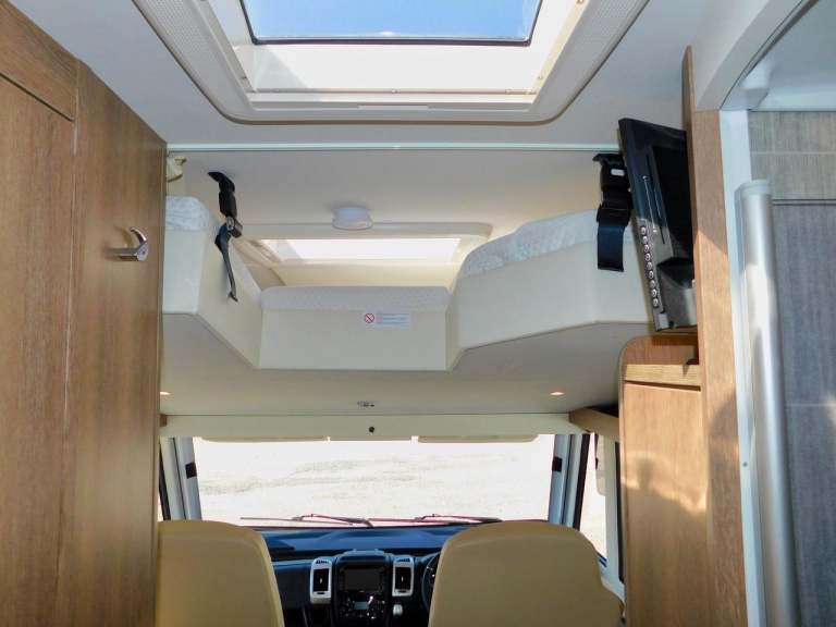 Step inside the spacious cab, where Luxury Climate Control Air conditioning, cruise control, Bluetooth connectivity, and hands-free capabilities ensure effortless driving. Relax in style with built-in blinds, Satellite Navigation, and an Ellectric over-cab Double/Twin Single Bed for ultimate convenience with Two Wardrobes. Take your Friends with you as we have a Total of 4 x 3 Point Seat Belts..