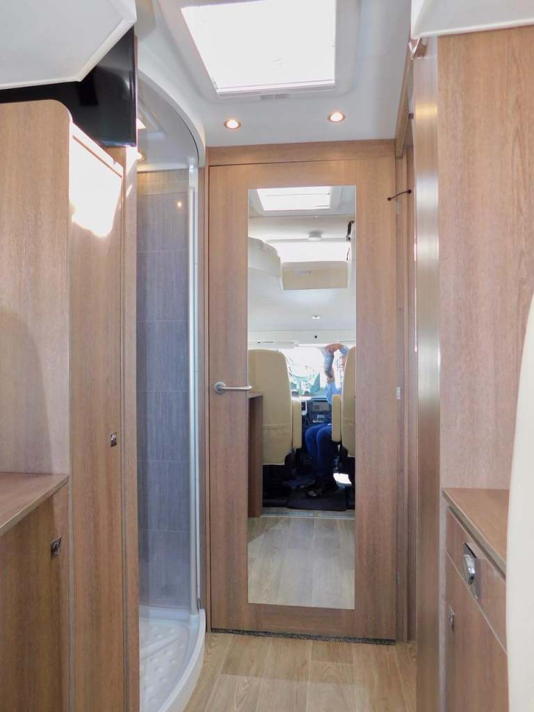 The Well Appointed Washroom has a cassette toilet, Vanity Sink with Electric mixer tap, a Large Mirror, as well as a Triple Vanity Cupboard and Loads of Storage. Across the Hall, desirable Separate Shower Cubicle adds to your privacy, with a door to section off this area for an Exclusive En Suite Feeling of Super Luxury..