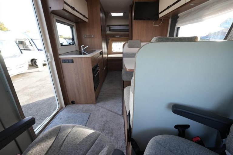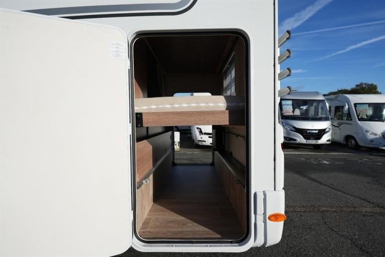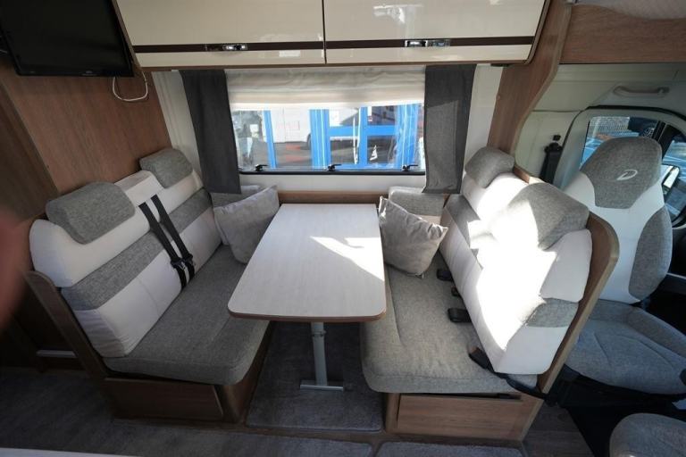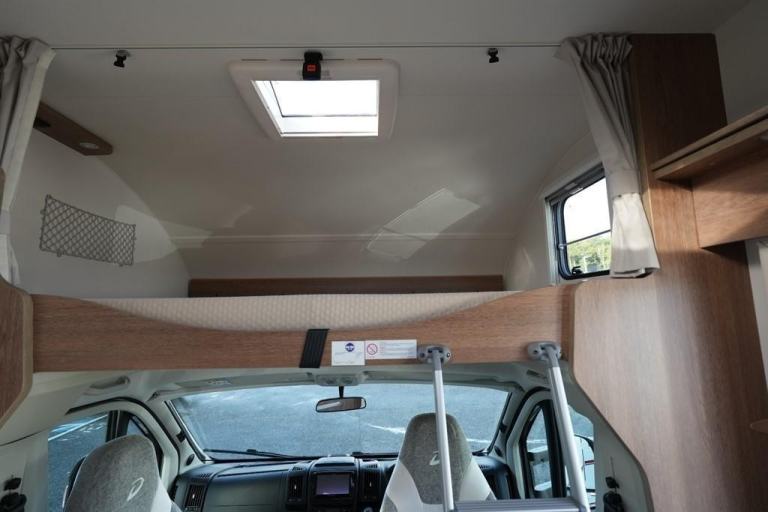 3850 KG Gross weight C1 driving licence required to drive this particular vehicle...L-6.51m...W-2.33m...H-3.19m...This family orientated Dethleffs Trend A5887, beautiful German engineering build quality and a incredible versatile commodious 6 berth 6 travelling seats configuration. That boast adults size rear end bunks beds. With the added advantage of the lower bunk can be lifted. Revealing extra storage space, within the already large garage beneath. The family oasis and combined washroom, with ample storage for the toiletries A perfect space to freshen up after the days adventure. Opposite the modern appliance kitchen area. Featuring 3-burner gas hobs, combined oven grill and large tower fridge freezer. An ideal space for rustling up quick snacks or delicious family meals. Progressing forwards to the ambient peaceful atmosphere, double dinette lounge area. That ingeniously incorporates four front facing travelling seats, a free standing dinning table and simply rotating both front captain seats around. Makes a comfortable socialising family area, while enjoying each others company, over a bottle of wine. Then finally when ready to experience a cosy nights sleep. Will effortlessly transform into an adults size bed. There's even further double bed over the drivers cab area. Which makes the six sleeping accommodations of this exquisite Dethleffs Trend A5887. That is enhanced with an exclusive package such as 2 x solar panels, WIFI, reversing camera, diamond cut alloy wheels, wind out canopy awning, cab air conditioning, cruise control, 4 bar bike rack, cab blinds and will certainly elevate your family holidays for sure.