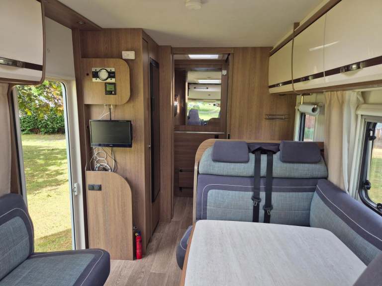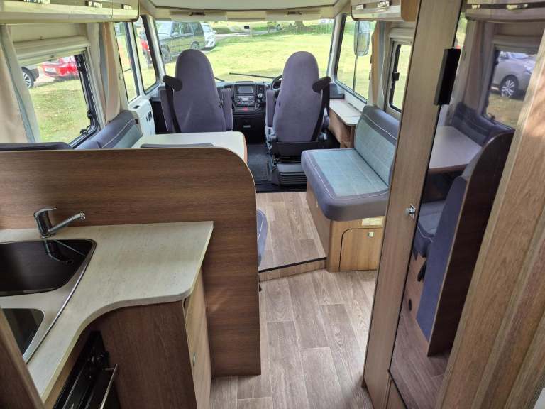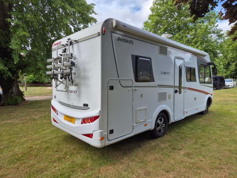 Motorhome depot are please to bring to market this lovely Dethleffs trend i6757, on a Fiat Ducato chassis this A Class motorhome offers both comfort and practicality. On entering through the side door you are greeted with a bright airey with a large dinette to your right with a good size table and plenty of fixed seating along with the 2 front seats being able to swivel it can easily seat 6-7 people and this area can also make into a small double if needed. To the left is the well equipped kitchen area with a combined oven/grill, 3 burner hob, sink and large fridge with freezer compartment and ample storage for the essentials. Beyond the Kitchen is the rear washroom that can be separated from the living area with large separate shower cubicle, toilet and sink, behind the large sliding mirror is a huge storage area with both shelving and hanging rails. To the front of the Motorhome there is the large pull down bed above the cab which sleeps 2 adults with ease, the cab itself is very spacious and is equipped with a Kenwood stereo with Bluetooth connectivity, AC, 6 speed manual gearbox, reversing camera and rear sensors. Outside the motorhome there is a full length Thurle wind out awning, bike rack, TV aerial and a large garage. Also for added security this has been fitted with a D-id Tracker which would require the subscription to be transferred to the new owner.This really is a great Motorhome and is perfect for either short weekend breaks or longer trips home or abroad and with a recent service is ready for its next adventure, viewings available at IP29