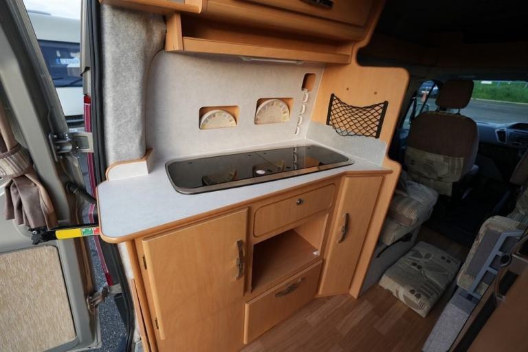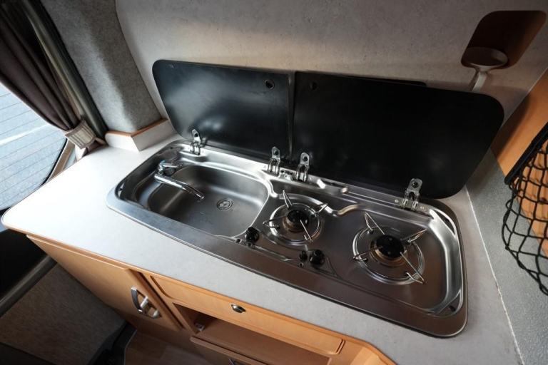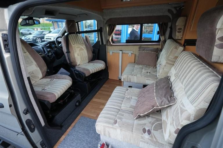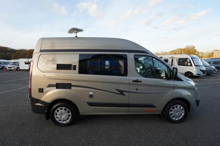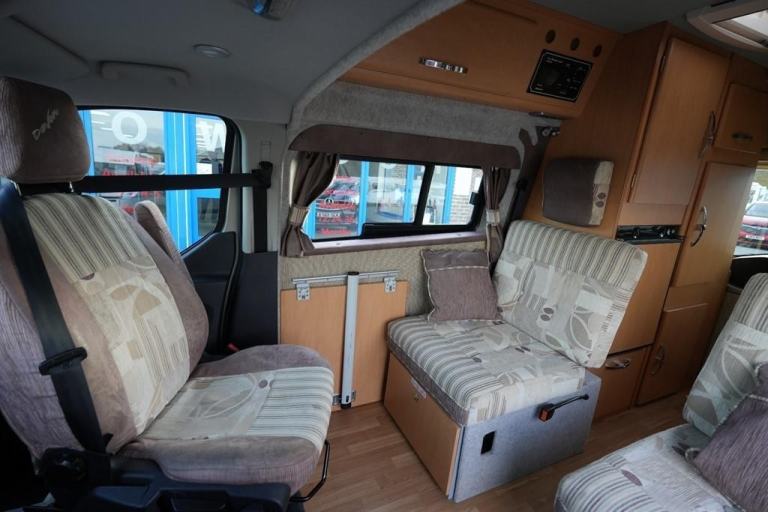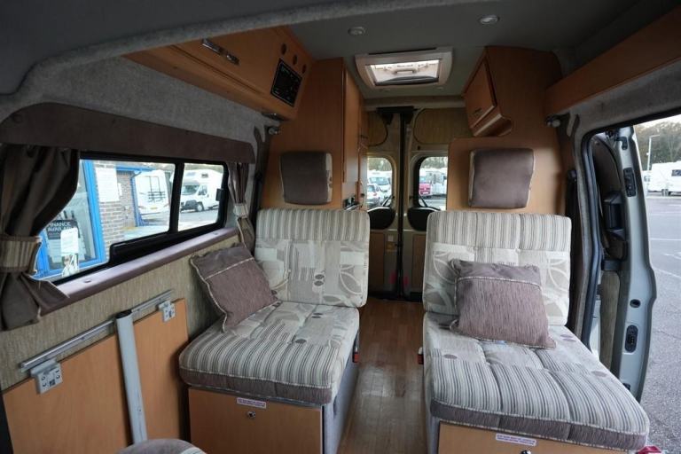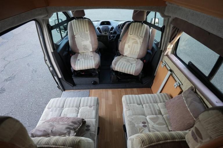 Together with the durable Ford 2.2 litre diesel engine. Makes the Devon Firefly an quintessential consideration for a adventurous couple. Who desire a sophisticated, practical 2 berth 4 travelling seats van conversion and must be surprisingly spacious as well. With ample storage compartments for their personal possessions, used while exploring. All this measuring 4.97 metres in length. Easy to manoeuvre and could possible be used as the daily commute!! Now welcome aboard, the rear functional gallery style kitchen area. That is conveniently situated next to the barn doors. Just a suggestion, open them, letting the fresh air flow through. The kitchen, featuring 2-burner gas hobs and fridge freezer. Ideal for preparing quick snacks or delicious meals. Position opposite the Thetford porta potti, which is neatly stored behind a cupboard. Next the multi functional and peaceful atmosphere dinette lounge. With two individual front facing travelling seats. Another idea swivel both front captain seats around. Which makes a comfortable relaxing seating area. While occasionally casting your eyes out at the glorious horizon or the picturesque starry night. Then when ready to experience a cosy nights sleep. Will effortlessly convert into individually sumptuous beds. The Devon Firefly also has driver comforts such as cab air conditioning, cruise control, front & rear park distance control, front fog lamps and the Devon will certainly deliver memorable adventures together for sure.