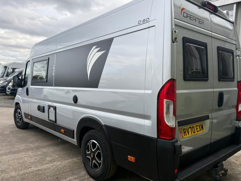 2020 70 plate Rapido Dreamer D60 fun sports camper ( very simialr to the Adria 640 SGX), only 16000 miles with 1 owner from new huge rear garage for bikes etc two removable single beds/double bed with huge electric drop down bed above.Both front seats swivel to create the front dinette.well equipped kitchen and washroom/wc.4250kg so will require a c1 license so carrying capacity is not an issue.EXTRAS INCLUDE WIND OUT AWNINGTRUMA DIESEL COMBI HEATINGREVERSING CAMERA AND SENSORSKENSINGTON TOUCH SCREEN HEAD UNIT WITH APPLE/ANDROID CAR PLAYTOW BARTRACKER ( subscription based)The main bed runs lengthways and is 1.83m long (slightly shorter, at 1.74m, on the nearside) by 1.29m wide. It can be parked in any position, right down to just 910mm off the floor, and there are switches to control it at either end, so you can operate it from outside when standing by the open barn doors at the back.If you want to use the D60 as a four-berth, the lower bed also has two Bultex mattress and is actually the larger of the two. It’s a generous 1.96m long (max) by 1.60m wide, reducing to 1.36m towards the front of the campervan. It’s not a bed that folds away, as in many rivals, but it can be completely removed – frame, mattress, the lot.In the garage area with ethe beds stowed away an ingenious design to allow the garage area to be used to its full potential, there’s a vast space here, up to 1.52m high and 1.20m wide , so you won’t worry about loading a motorbike on board incorporating a chequer plate floor and a handy rear shower attachment.