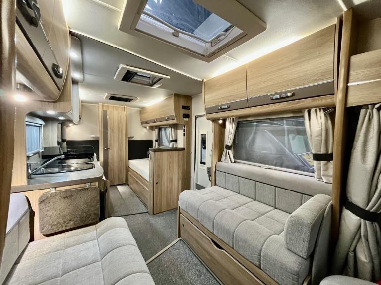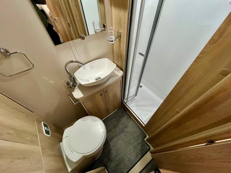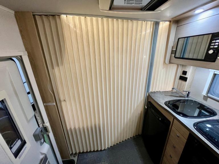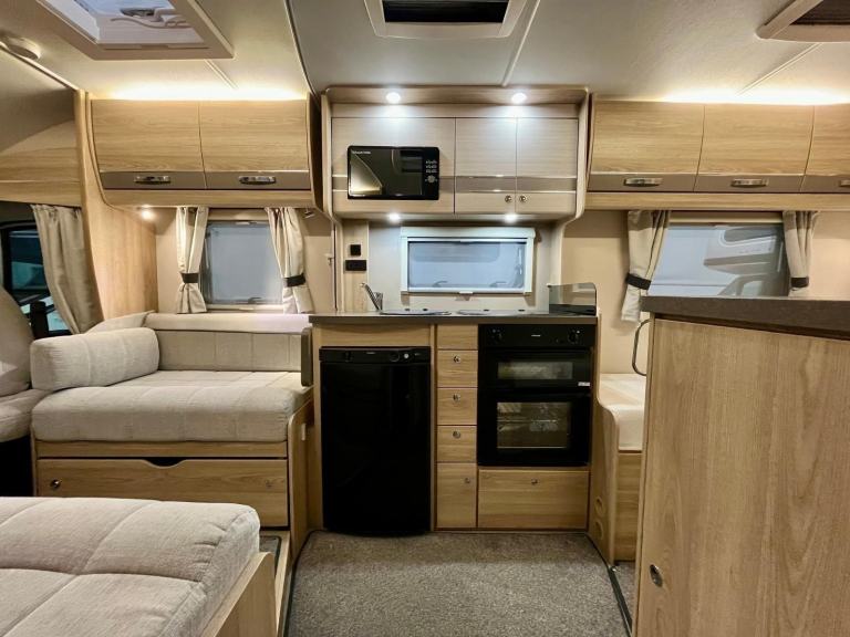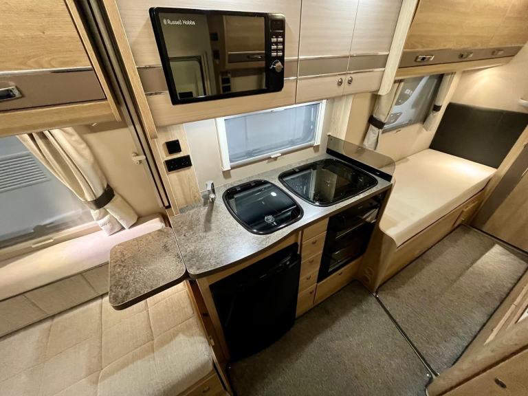 Safety Belt Pretensioners; TV Aerial; Bluetooth Telephone; Passenger Airbag; Blinds; Anti-Lock Brakes (ABS); Solar System; 240V Lighting; Digital Radio; Driver Airbag; Bluetooth Audio Streaming; Electronic Stability Program (ESP); Immobiliser; Microwave; Cooker; Air Conditioning; Back Seat Safety Belts; USB Docking; 12V Lighting; External Side Lockers; Central Seating Group; V5 Registration Document; Grill; Awning; Separate Shower; Oven; Sink; USB Audio; AM/FM Stereo; Hand Washbasin
