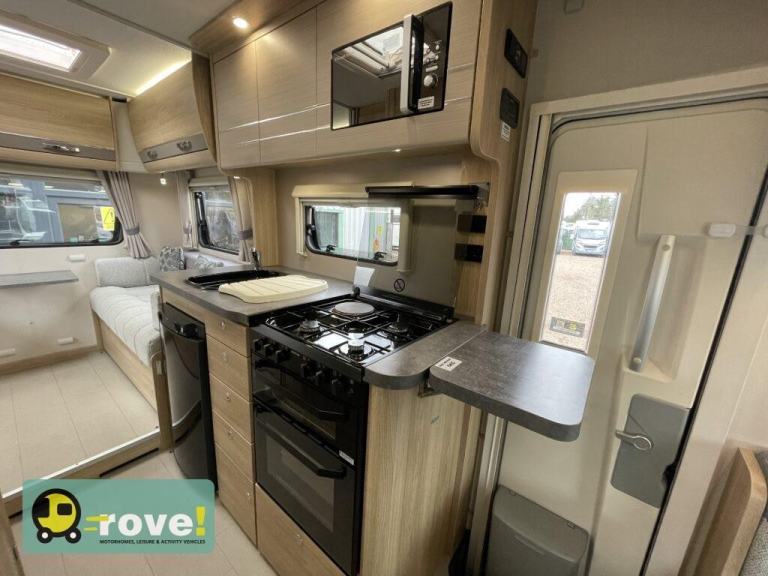 In summary, the Elddis Autoquest 196 2020 is a highly practical and versatile motorhome that perfectly balances generous accommodation with easy-to-drive dimensions. With its spacious rear lounge, flexible sleeping arrangements, well-equipped kitchen and comfortable driving experience, it makes an excellent choice for families or couples looking to explore in comfort ,another outstanding touring motorhome proudly offered by Rove Motorhomes.