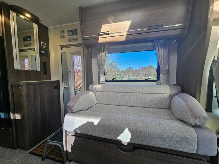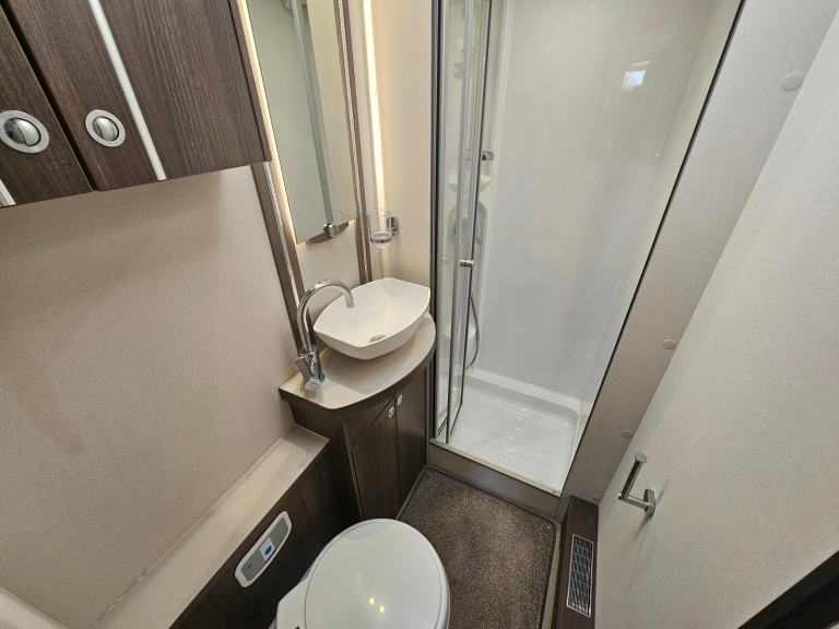 TV; Immobiliser; Full Service History; Bluetooth Telephone; Central Heating; Fixed Double Bed; Cooker; Air Conditioning; External Side Lockers; 12V Lighting; V5 Registration Document; Blinds; Anti-Lock Brakes (ABS); Awning; Mains Hookup; Solar System; Driver Airbag; Hand Washbasin