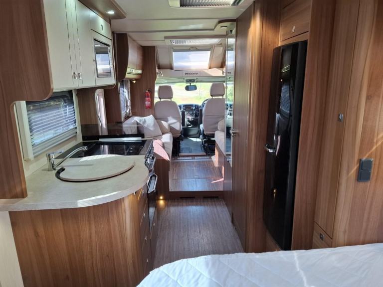 Elddis Encore 254Year: 2017 | Berth: 4 | Belts: 4Engine: 2.2L | Fuel: Diesel | Gearbox: ManualMileage: 17050 | Price: £46,995 A spacious motorhome, ideally suited for a couple seeking the luxury of exclusive use, with plentiful storage for extended journeys. In the forward habitation there is a lounge with opposing side sofa seating that forms a spacious area for relaxation and dining, and which can be augmented by use of the swivel cab seats. This seating can be readily converted into a transverse double berth. Beneath the bench seats are fold up chairs with seat belts providing two additional travel positions. Beyond the nearside habitation door there is a kitchen comprising a gas oven, a grill, a hob (with 3 gas burners and an electric plate), a microwave, and a sink. Opposite the sink is a tall fridge with a freezer box. On the offside there is a central wet room with a toilet, hand basin, and shower. At the rear of the vehicle is a transverse island bed with wardrobes either side of the offside bed head. Remote Central Locking for Hab and CabCruise ControlReversing CameraElectric Windows/MirrorsCab Air ConSwivel Cab SeatsCab Window BlindsHeki Roof LightAlde HeatingLounge with Side Sofas (converts to Double Berth)Rear Fixed Transverse Island BedLarge Fridge w. Freezer BoxOvenGrillHob w. 3 Gas Burners and 1 Electric PlateMicrowaveSinkToiletHand BasinShowerAwningAerialSolar PanelTow BarBike Rack w. 2 Rails Weight: 3500kgLength: 7.45m (incl. Tow Bar but excl. Bike Rack)Please note that this vehicle can be driven using a standard UK licence.This vehicle is ULEZ and CAZ compliant. This vehicle will be supplied with a 12 month warranty. Additional images available upon request, with viewing highly recommended (located on our Reading forecourt, RG8). Part Exchange, Finance and Warranty options available.