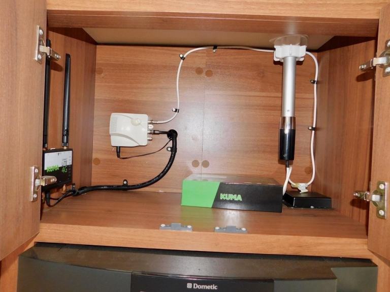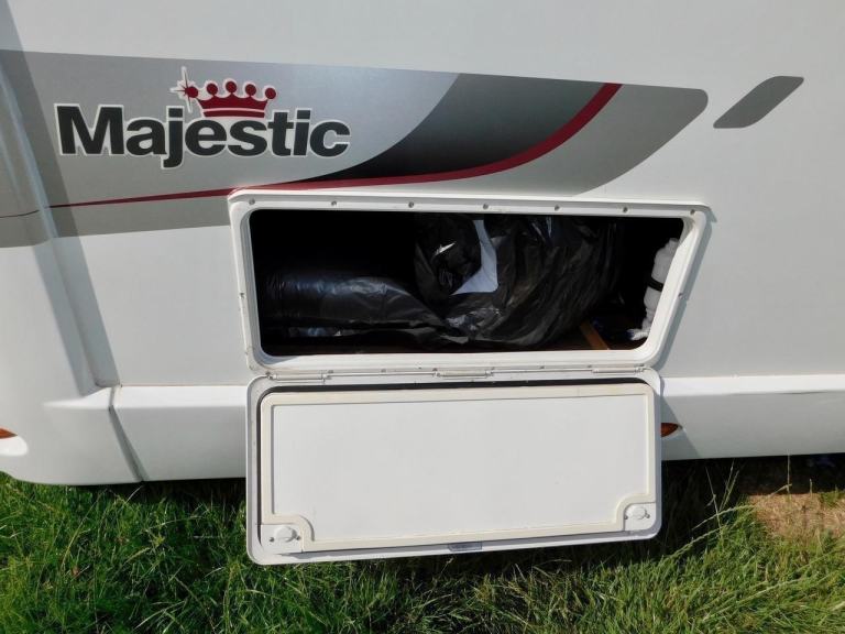 Outside we have the Silver Cab, Large Dometic wind out awning, awning light, reversing camera, towbar, gas locker, side locker, Fiamma removable Rear storage box, a Solar Panel two leisure batteries, a Vodafone Alarm and Tracker and a mains hook up point.