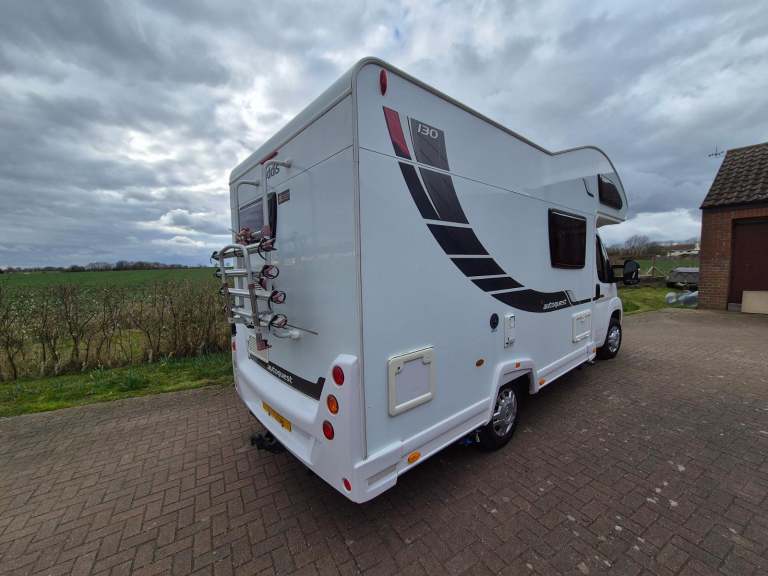 The Elddis Autoquest 130 is one of the most popular motorhomes ever built and it is easy to see why. Offering great value for money, this motorhome is only 6.17 m in length meaning that it is easy to drive and park but still offers comfortable living space for a family. The layout inside consists of an end kitchen which is equipped with a gas oven and grill and a 3 gas burner hob . There is a 3 way fridge with an ice box and plenty of cupboard and locker space to store your kitchen essentials. Next to the kitchen is a storage cupboard with a flat surface which is ideal for using as a food preparation area. The washroom has a shower, a Thetford cassette toilet, a fold away wash basin with a mixer tap and a bathroom cabinet for your toiletries, with a roof light that floods the washroom with daylight. Perhaps the standout feature of this motorhome is the spacious and airy lounge which is a lovely area for you and the family to relax in, with even more storage in the overhead lockers. The nearside has a long side facing sofa offering you the opportunity to sprawl out after a busy day out and at bedtime the sofa is long enough to be used as a single bed. On the offside there are forward facing and rear facing 2 seater sofas with the forward facing sofa having 2 seat additional seat belts. The 2 sofas combine to create a double bed and the final 2 sleeping berths are in the overcab bed which can be accessed via a ladder. Based on the excellent Peugeot Boxer chassis this Elddis has the powerful 2.2 litre engine with a 6 speed manual gearbox so you will have plenty of power to climb hills as and when you need to. The motorhome has some nice features including a solar panel to keep your leisure battery topped up, a wind out awning, bike rack and tow bar. To see a more extensive file of photos and a walk round video please call or email.Viewing Available at IP19 8RH
