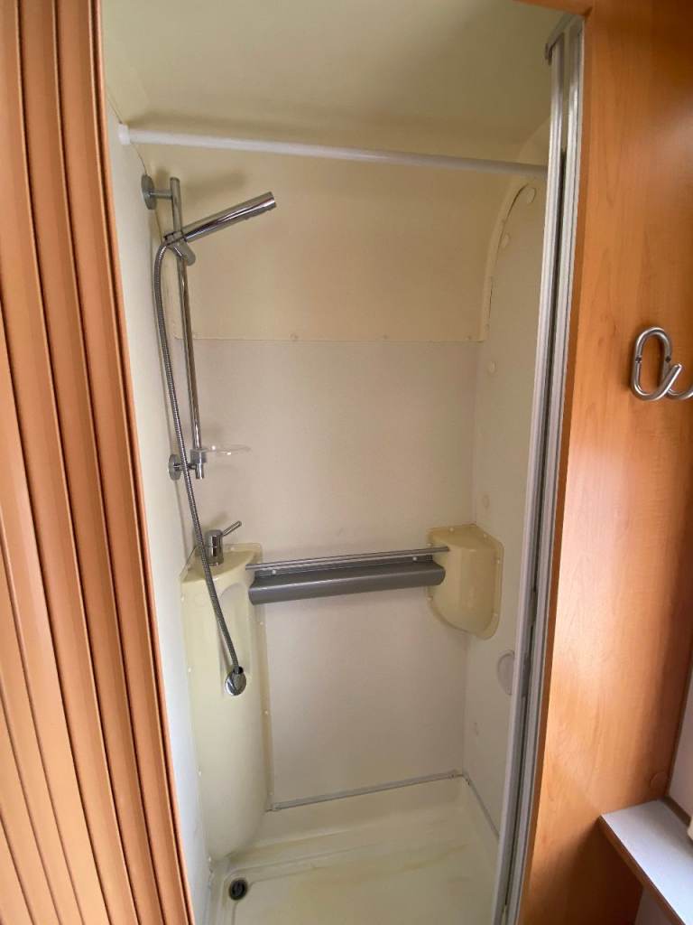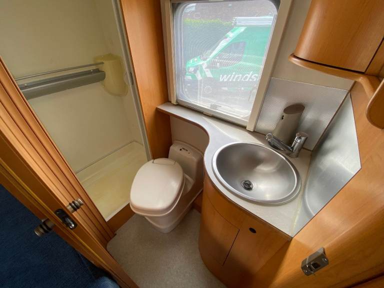 Rear washroom with a shower cubicle, sink, wc, cabinets and mirror. Thetford cassette toilet. Nets, curtains, screens and blinds, Window and door fly screens, carpet, ample storage throughout.