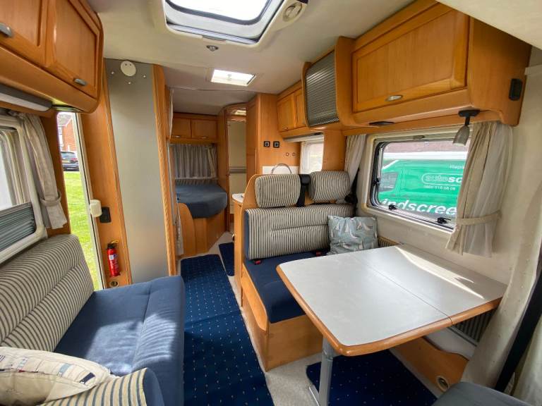 Also included is a Kampa Motor Rally Air Rally Pro 390L Awning in very good condition with floor mat. No leaks (air or water), has previously been re-proofed. Includes internal curtains (in new/unused condition), pump and fixing pegs+storm straps. MOT 29/06/2026 (Will be sold with new MOT) Last Service : 20/06/2025