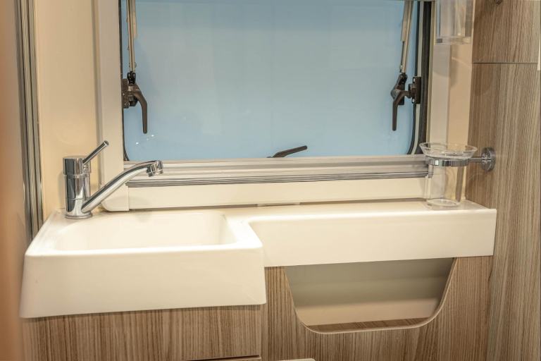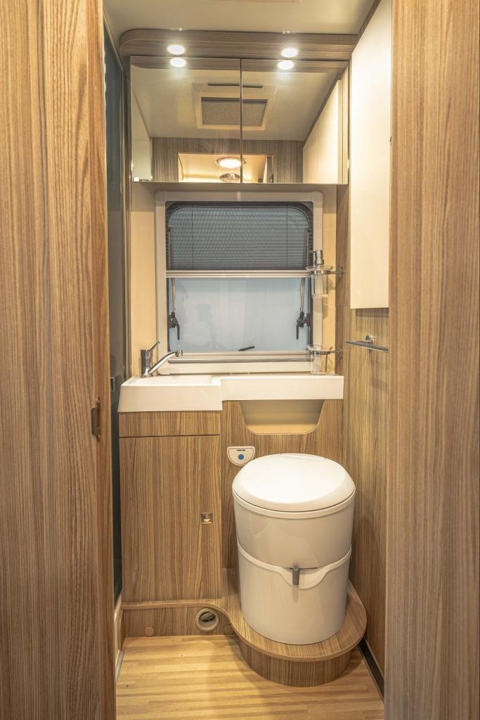 Spacious Bathroom With Thetford Electric Flush Toilet And Hand Wash Basin