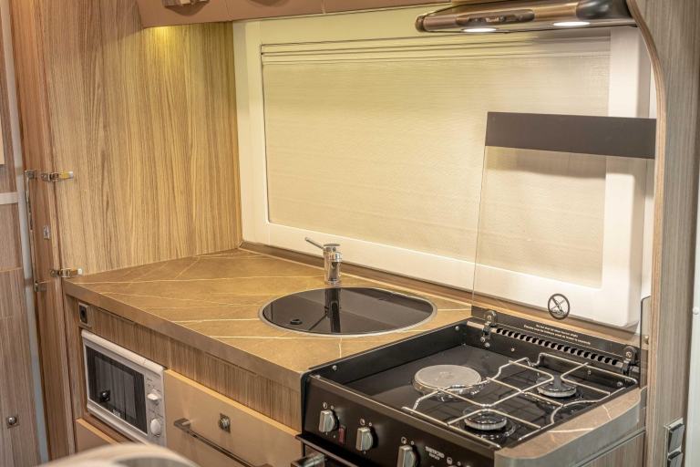 Safety Belt Pretensioners; Passenger Airbag; Bluetooth Telephone; TV Aerial; Central Heating; Fixed Double Bed; Alarm; Blinds; Anti-Lock Brakes (ABS); Solar System; Double Glazing; Driver Airbag; Digital Radio; Bluetooth Audio Streaming; Immobiliser; Electronic Stability Program (ESP); Microwave; Cooker; Back Seat Safety Belts; Air Conditioning; External Side Lockers; 12V Lighting; V5 Registration Document; Grill; Awning; Mains Hookup; Separate Shower; Oven; Sink; Hand Washbasin