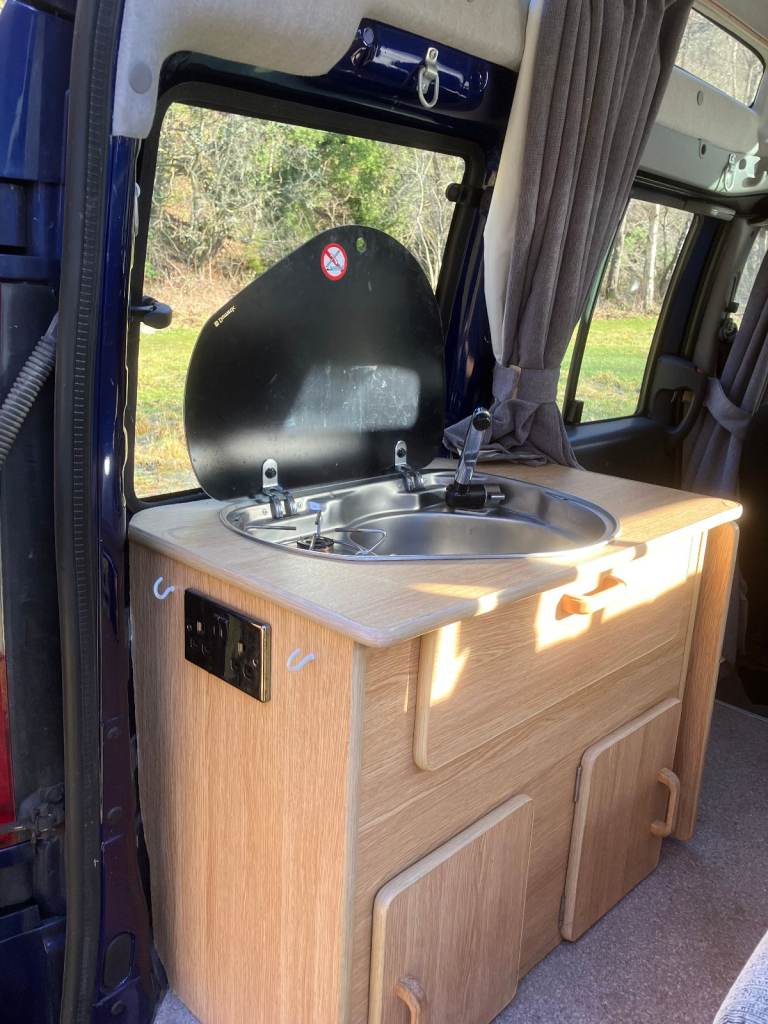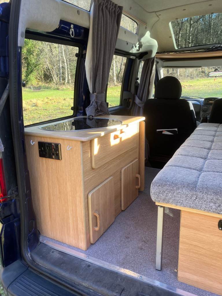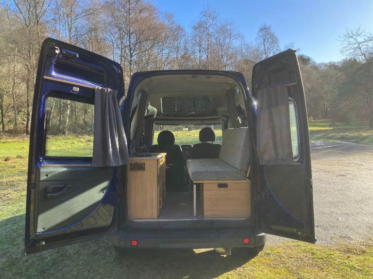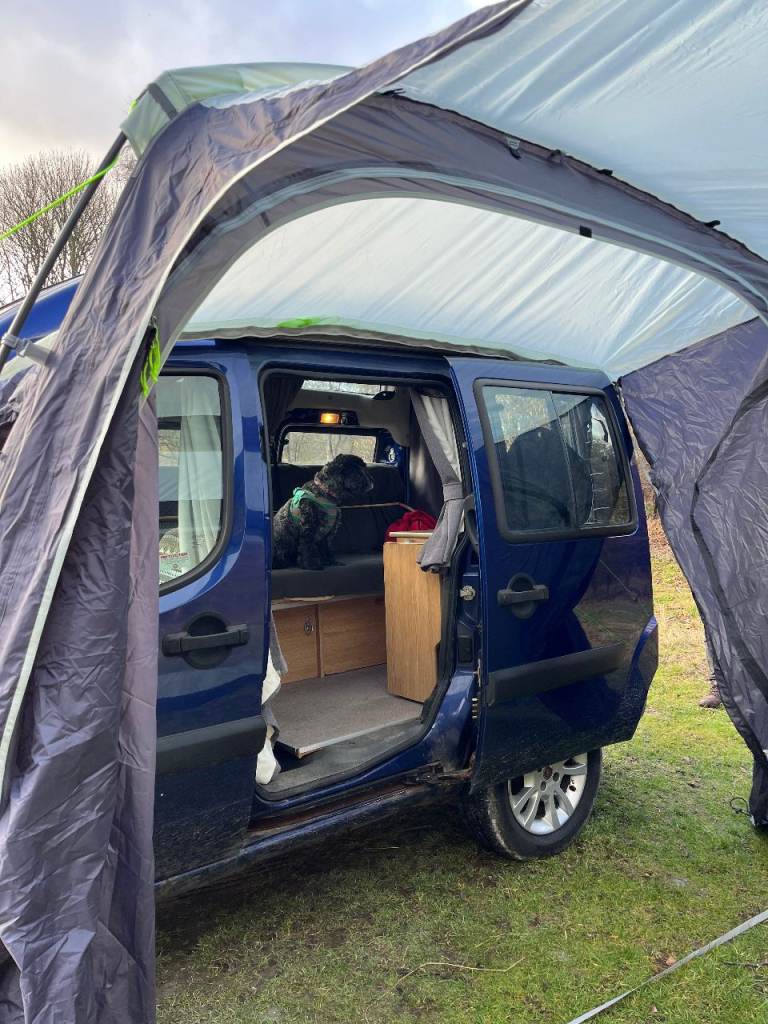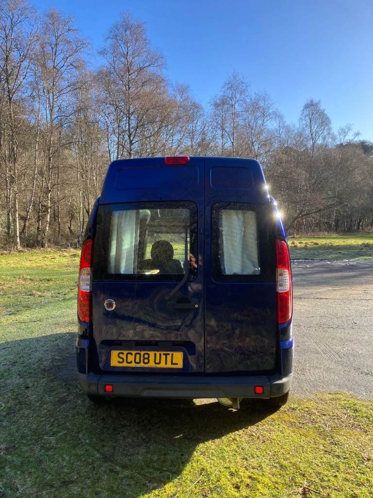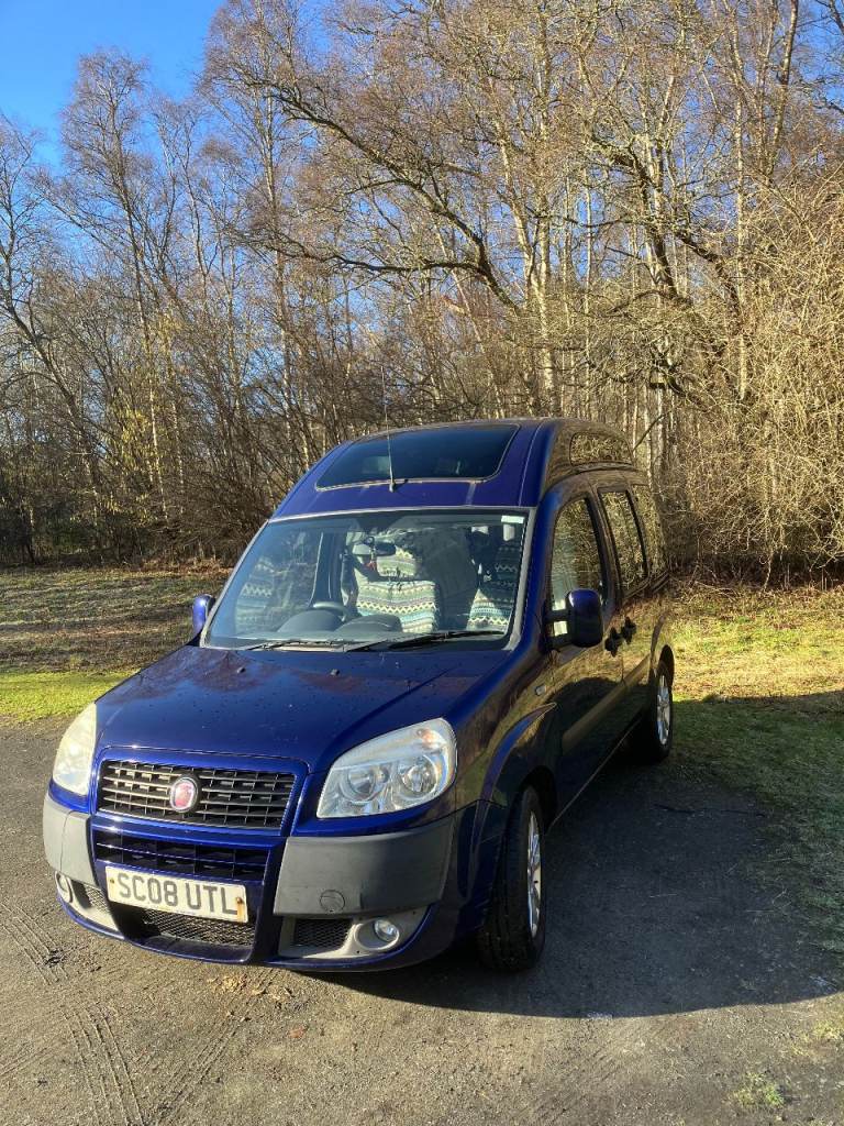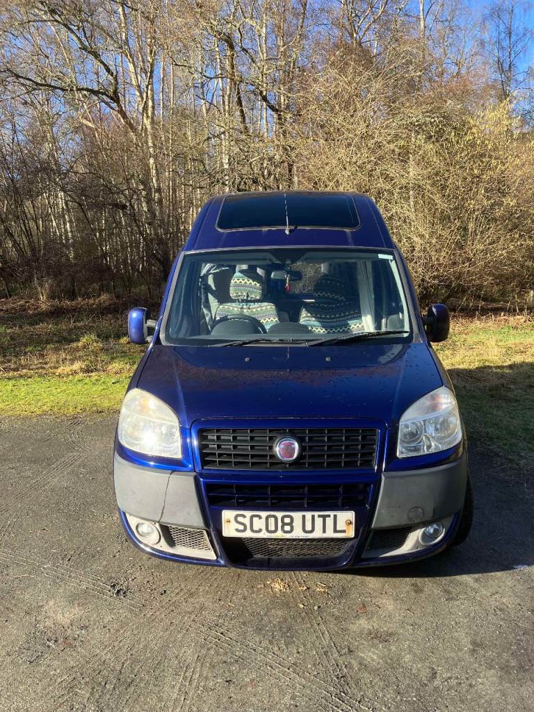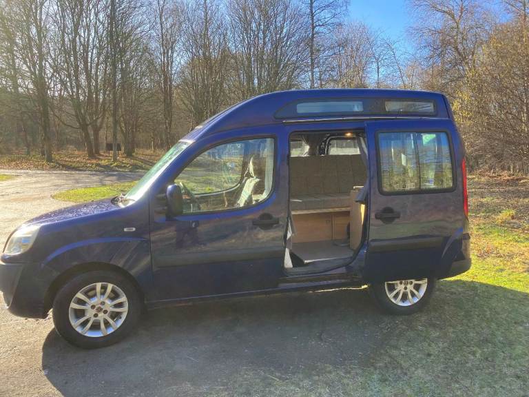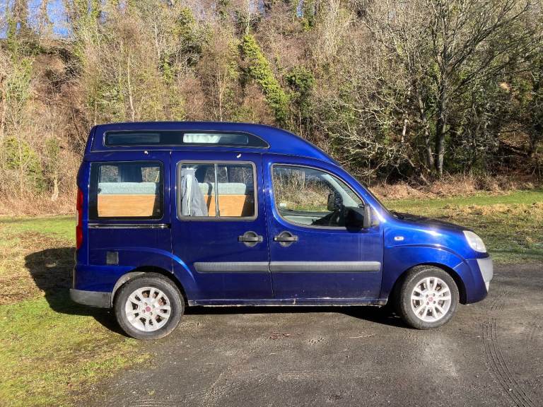 Fiat Doblo hi-top mini camper van in cool jazz blue. £5,500.