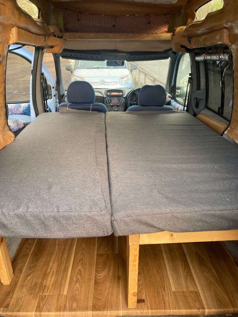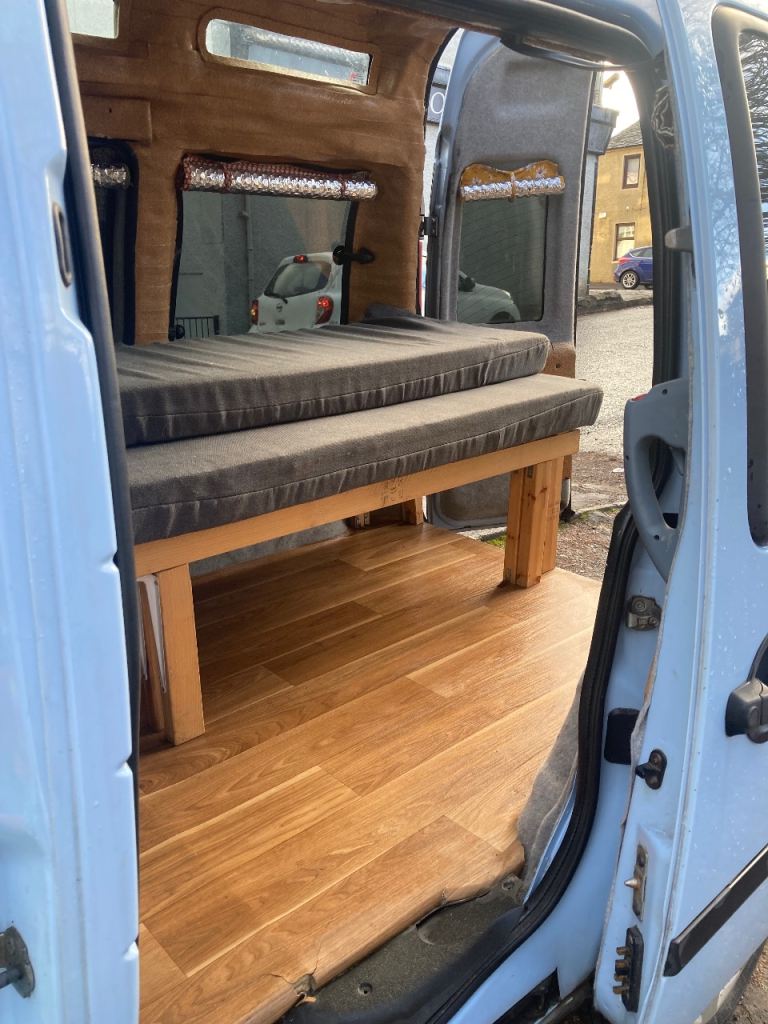 Due to a change in circumstances, I need more seats with seatbelts, I’m reluctantly having to sell my great wee converted camper. Very basic conversion, rear floored, single bed easily converted to double bed with comfortable memory foam mattress, lined in cork and has thermal (fabric backed) blinds. Tinted rear windows for added privacy. Tow bar.