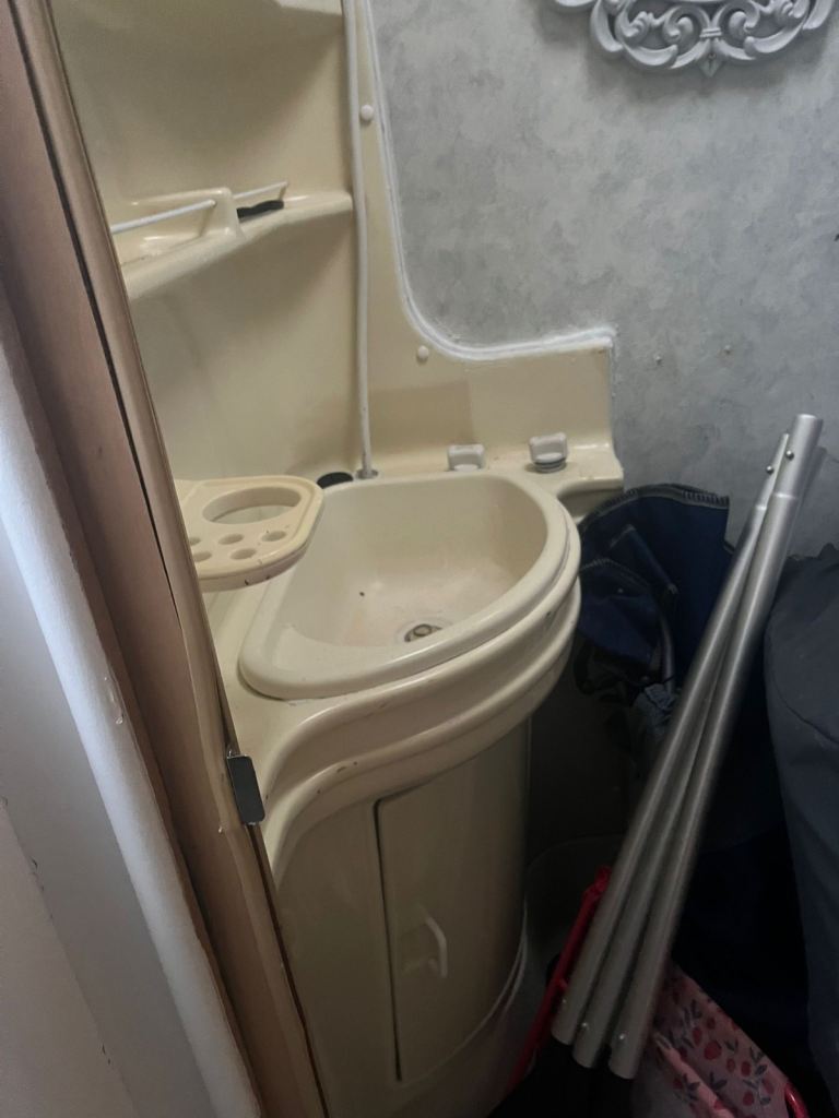 We purchased this 2 years ago put new cooker in there that’s never been used new sink and new work tops new carpet and built a toddler bed or seat at the back