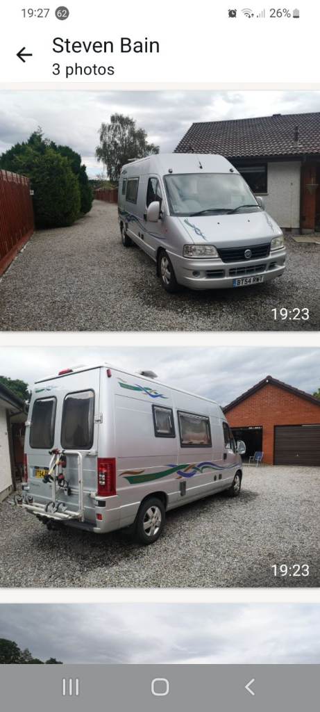 Excellent condition for age. MOT. Solar panel and leisure battery for off grid camping. Truma electric/gas boiler also works off grid. Diesel heater full cooker, cassette toilet, TV for hook up and TV for off grid, cruise control and bike rack. Drives really well for age. No dealers.