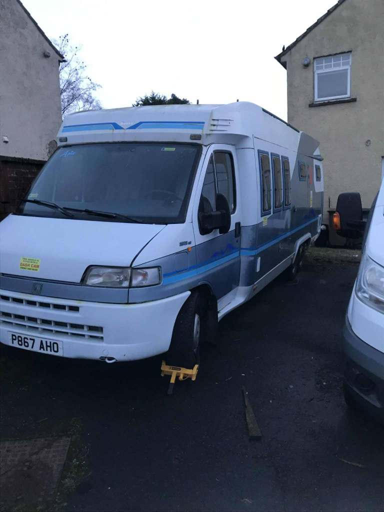 1987 Fiat Ducato Hobby 750 American Motorhome Left hand drive twin wheel base Had this from March last year and only done just over 500 miles on it 3 trips to Southerness Holiday park Cant get use to left hand drive Passed mot without advisories drives a treat Starts first time Just fitted 2 new solar panels n new inverter Full size double bed Fridge Cooker Oven Shower Toilet etc Electrics need seeing too badly as i they've never worked or i dont know how to work them probably Galvanised chassis so never been welded 2 spare wheels n tow bar New curtains Seating immaculate Great condition inside and out for its year MoT 16/09/26 Log book here Disabled road tax just now 2.5ltr Diesel. Dash board camera 2 wheel locks plus steering lock New skylight Rear cycle rack Speedo is stuck on 140k but was like that when i bought it but was assured another engine had been fitted couple months before i bought her I drove her 300 miles from Derby to Ayrshire and it didn't flinch once I've been as honest as possible about her and would recommend test drive Thanks