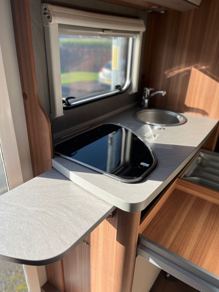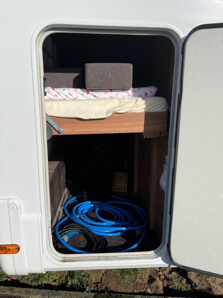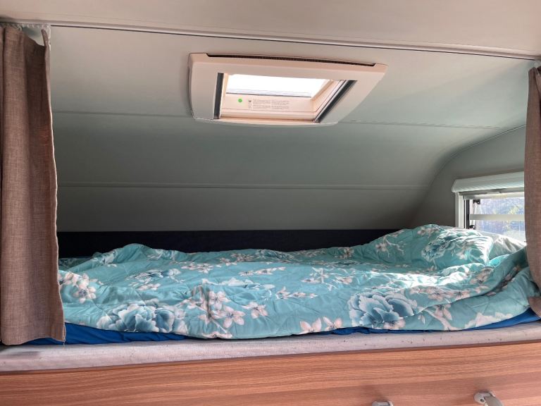 Fiat Ducato based 2.3 chain driven. 6 berth motorhome, 6 belted travel seats, captain seats in front, blinds all round, 2 new house batteries last year, new vehicle battery last year. Timing chain and service June 2025. 4 tyres like new. Comes with spare wheel and jack kit. 3 bike bike rack on rear. Comes with good size fridge freezer that runs off mains, gas or on 12v while driving. Good size double bed over cab with sky light and window in side and net and curtains to stop kids falling out. Dinette converts to double bed. Rear bunk beds with net and sliding door for privacy with a garage for storage underneath it. Bottom bunk can be folded up for extra storage of larger items while driving. Windows and door with built in fly net. Has a gas oven and 3 ring hob. Comes with water hose and new mains cable. Good size underslung insulated water and waste tank. Comes with spare wheel and jack and air compressor. Shower and electric flush toilet. Truma combi boiler for heating and hot water can be controlled by phone if you put a sim in the control module. Operating manuals included Reversing camera and sat nav in cab. 2 sets of keys present, V5 present. Mot may 2026. We don’t need a 6 berth anymore. Gross weight 3500kg so a normal licence can drive. And under 6.5m