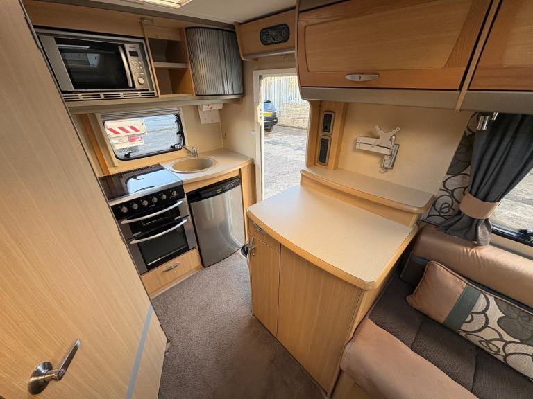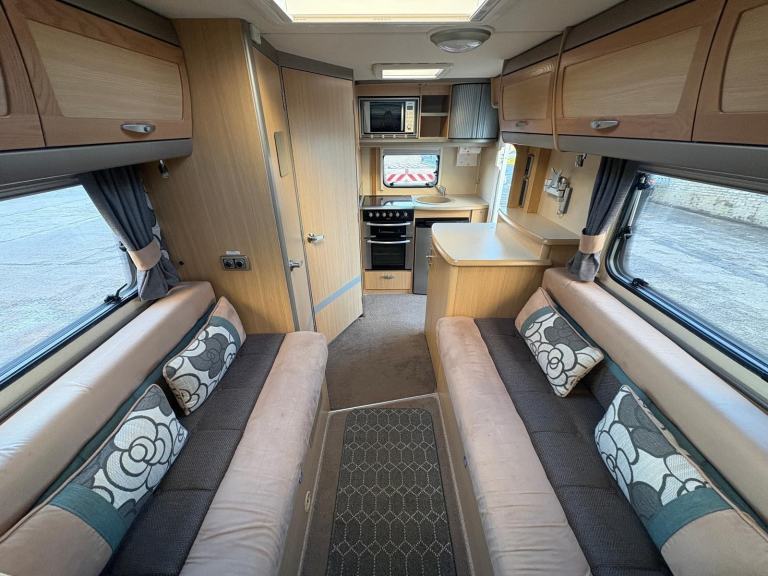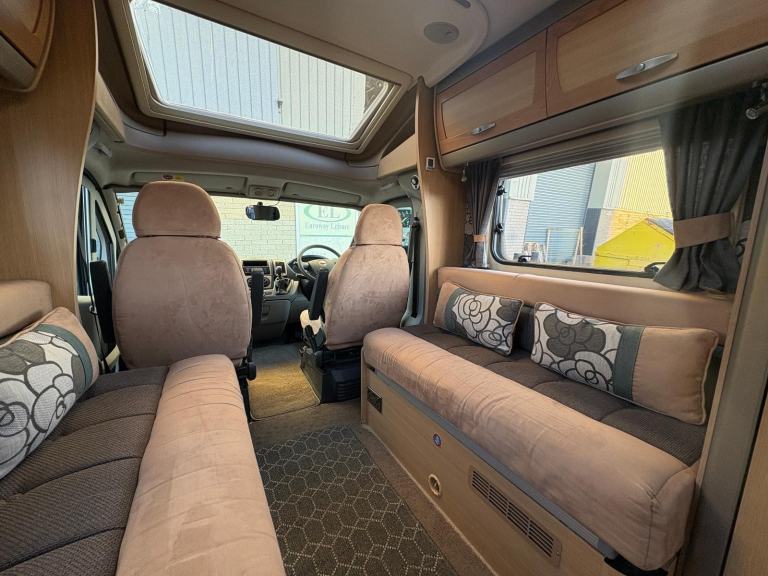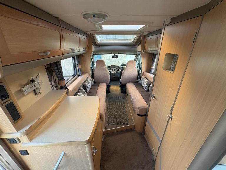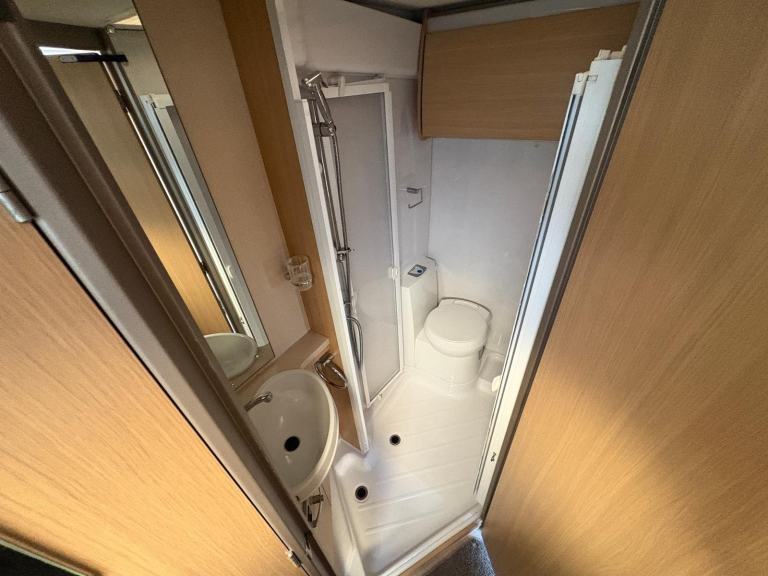 A lovely compact motorhome measuring 5.90m that can easily fit on the driveway, this Bessacarr E510 model is bright and airy on the inside, and offers a surprising amount of space and mobility.