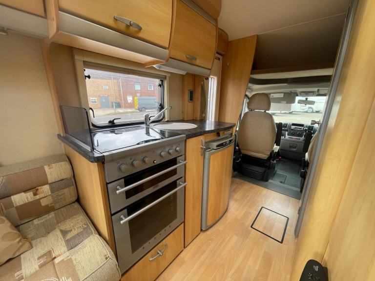 HERE WE HAVE A LOW MILEAGE2 BERTH MOTOR HOME WITH THE REAR LOUNGE THAT MAKES LARGE DOUBLE BED OR CAN BE USED AS 2 SINGLES . REMOVABLE CARPETS BLOW AIR HEATING GOOD SIZE BATH ROOM WITH FLUSH TOILET SHOWER WASH BASIN AND VANITY UNIT FULL OVEN HOB AND GRILL FRIDGE 12/240 VOLT HOOK UP ON BOARD FRESH AND WAST WATER TANKS FRY SCREENS AND BLINDS TO ALL WINDOWS CAB BLINDS STEREO REVERSE CAMERA BIKE RACK STUNNING BOTH INSIDE AND OUT ALL BOOKS AND MANUALS SOLD WITH 12 MONTHS MOT MAY PX TEL 01274 687800 OR [Phone number removed]
