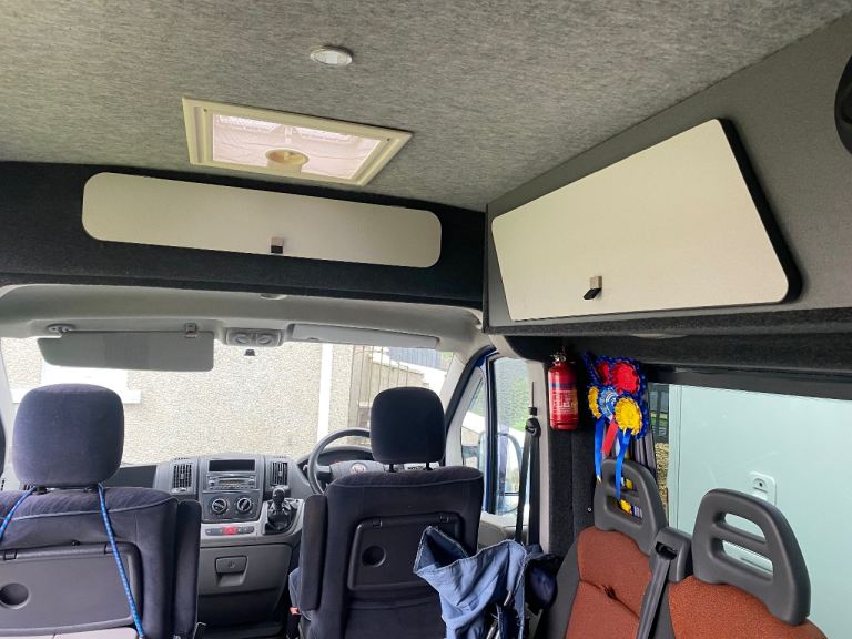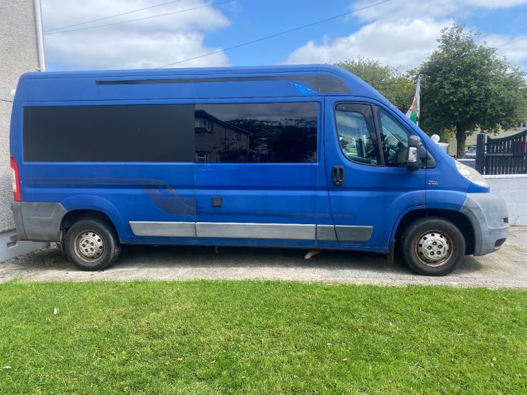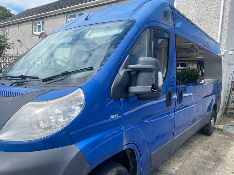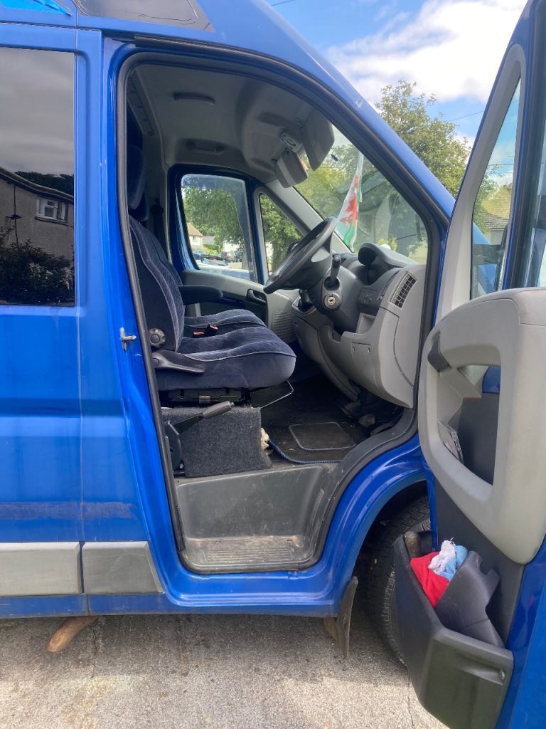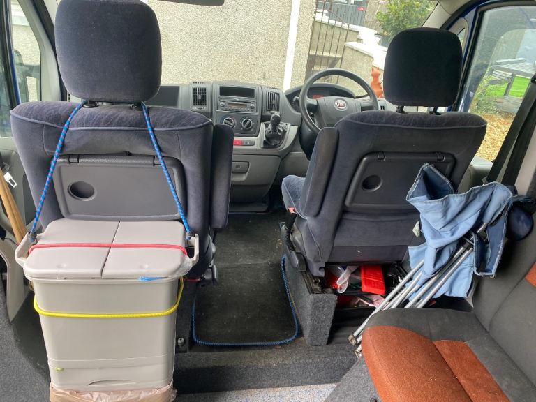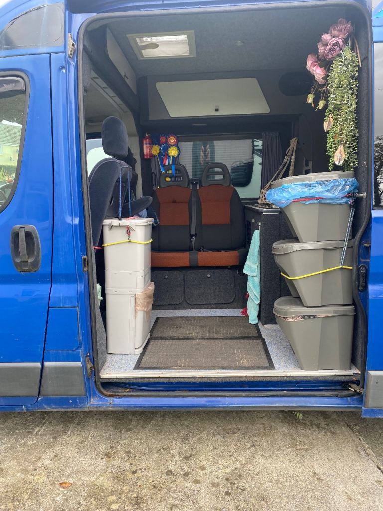 Converted Fiat Ducato long wheelbase 2011 camper van. Selling due to illness. Just passed MOT with no advisories. It came with accessories like awnings but I have never used them. It has a double bed, sink, double gas hob and storage cupboards. The walls have ply panels with and grey fabric. I am not knowledgeable about the camper electric part and it does need to be attended to because the lights are not currently working but it shouldn’t be difficult to sort for someone that knows what they are doing. Hence the lower price. Offers considered. The driver and front passenger seats are pilot seats and there is a pair off further passenger seats situated behind the driver seat and these also have seat belts.