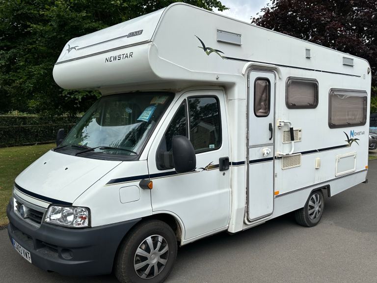 The Fiat DUCATO Newstar 15 JTD MWB motorhome, registered in 2003, is a 4-berth camper equipped with a manual transmission and a 2.0-litre diesel engine. With a mileage of 75420, this white vehicle offers comfortable sleeping capacity for up to 4 people, making it ideal for family camping trips or small group adventures. This coachbuilt motorhome is manufactured by Fiat and comes with a V5 registration document, ensuring ownership and usage are legally compliant. Perfect for exploring the great outdoors in style and comfort.
