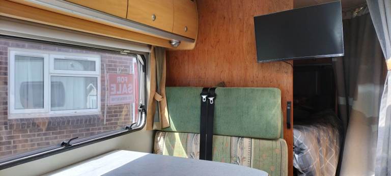 Here we have my fiat Ducato lunar champ, she's 4 berth with 4 seatbelts, it's the one with the bomb proof iveco engine, new brakes all-round, clutch replaced a year ago also replaced all the exterior lights as they were yellowing, upgraded the 12v system including 2 large Bosch leisure batteries totaling 360ah also 2 solar panels on the roof and a 3000watt inverter, smart TV and WiFi. Any questions please feel free to ask