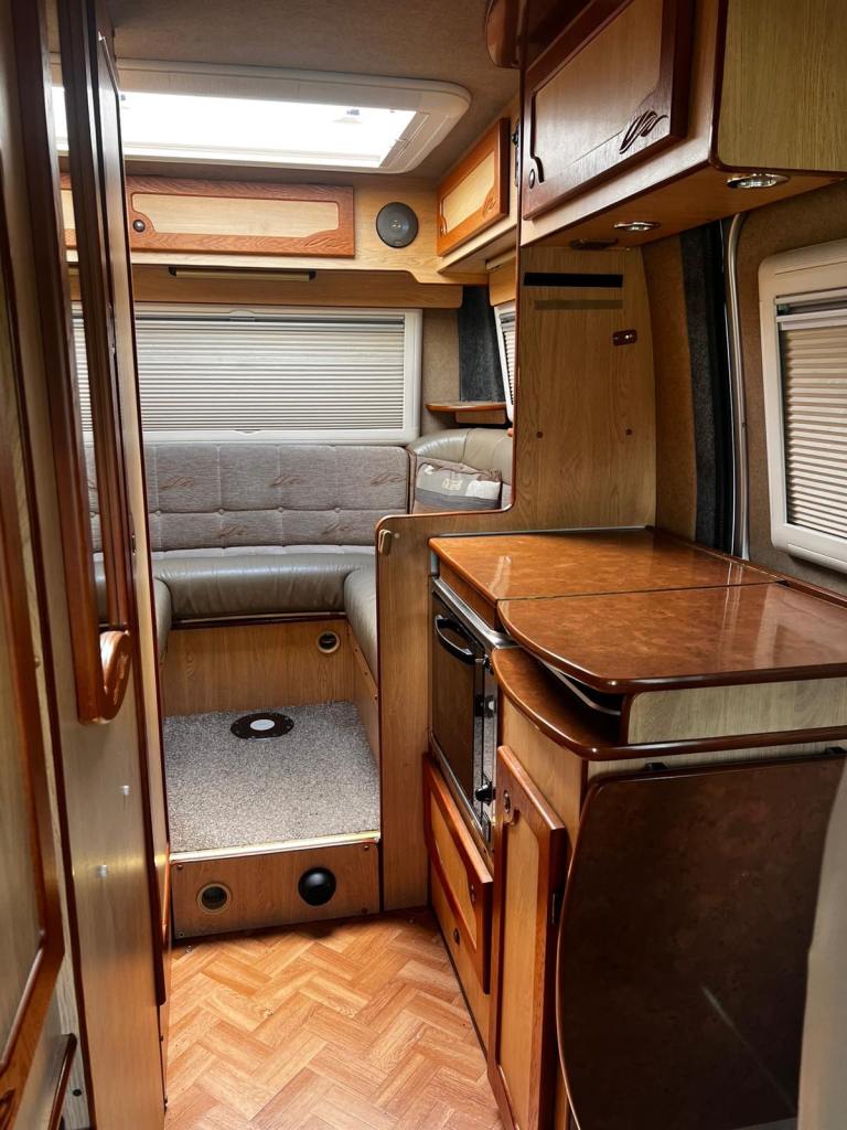 Fiat IH Savanna Tio 2004. Two berth two seat belts. Built by the prestigious motorhome builder Ian Hartley The campervan is built on the reliable Fiat Ducato 2.3 diesel van. MOT till November 26 with no advisories, recent habitation check 2024 with no issues. The van has been very well looked after by the previous owners and only covered 62k miles with documented history. 5 New tyers in 2022 and little use. Solar panel on roof
