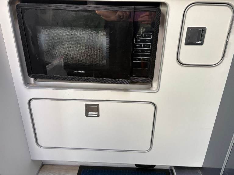 1 large draw below microwave and small ‘pocket hole’ storage cupboard