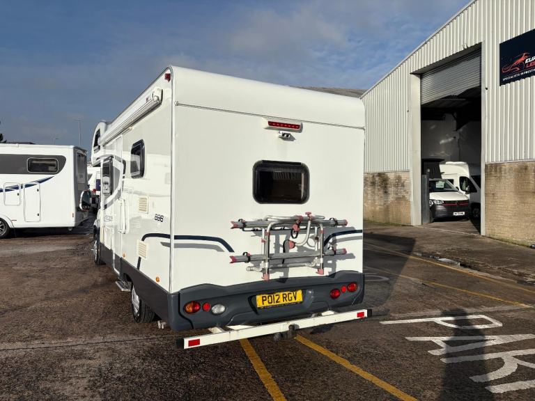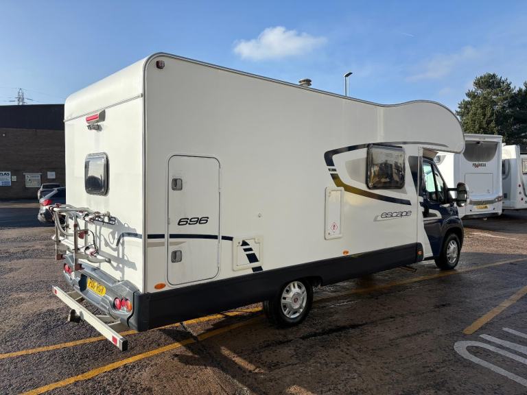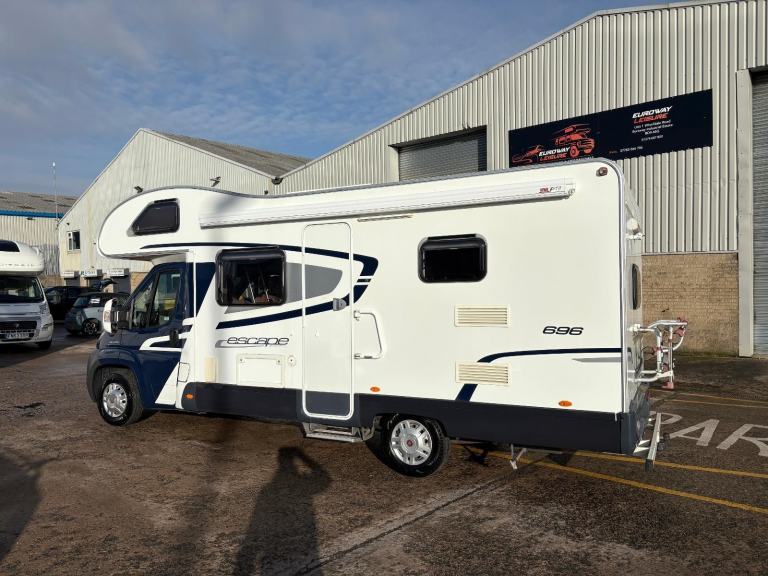 SWIFT ESCAPE 696 motorhome, a 6 berth and 6 belt high-line motorhome, with the popular twin rear bunk layout. First registered in December 2012. Powered and based on the proven Fiat Ducato 2.2 130bhp Multijet diesel engine and chassis, in conjunction with a six-speed manual gearbox.