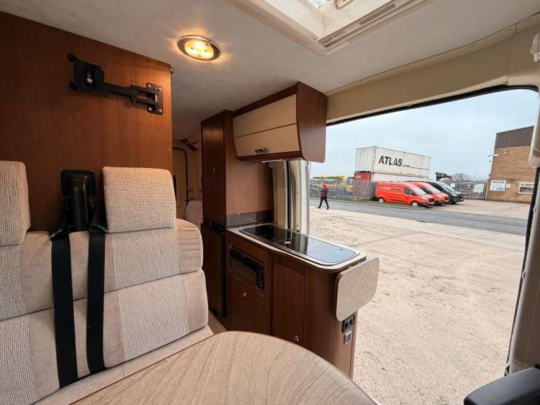 This model 669 is externally eye catching in classic white colour with modern decals. This model 669 also has a Bike Rack and reversing camera fitted. It has been well looked after with a good recorded mechanical service history. Its length is 5.99 metres and its width is 2.1 metres with a MAM weight of 3300kg allowing anyone with a standard UK driving licence to drive it and make wonderful memories in it.