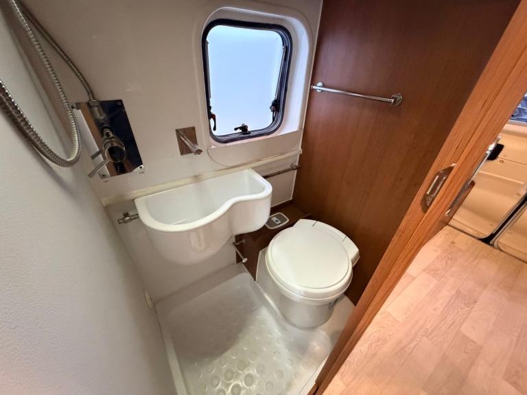 The central kitchen area is well equipped, featuring a fridge/freezer, sink, 2 gas hob, oven and grill. Opposite the kitchen is the bathroom, complete with modern sink, shower and toilet. At the rear you’ll find two bench seats for when you want to relax, dine or entertain converted to a double bed in a matter of seconds with storage space beneath the bed and seating area capable of storing bikes, canoes and all travelling holidaying equipment.