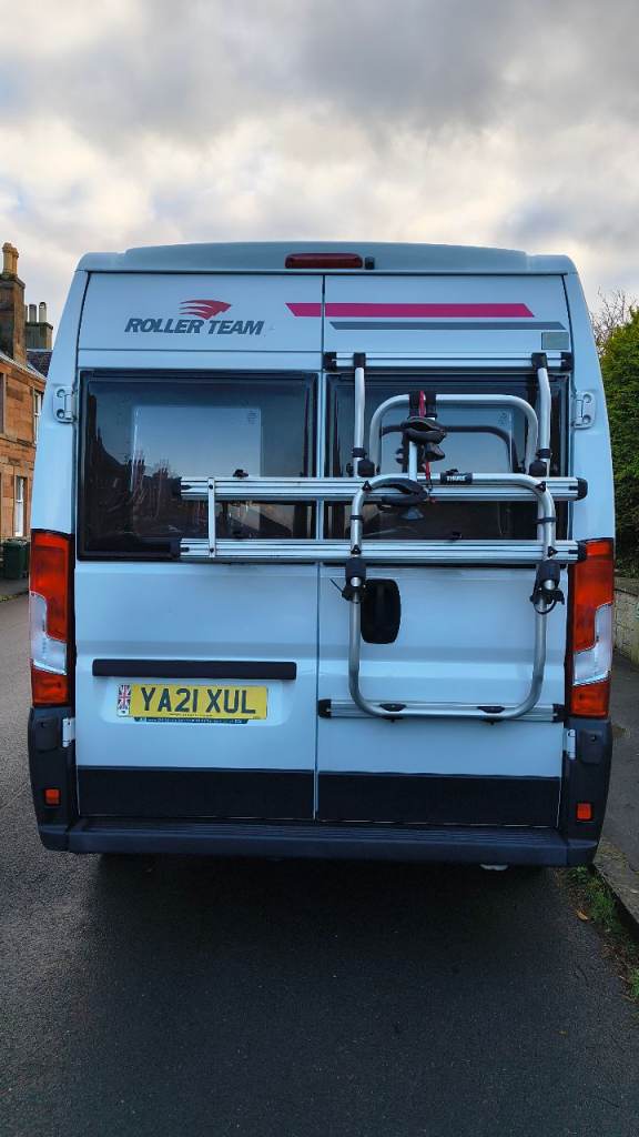 2021 Roller Team Toleno L campervan, 22,950 miles. High spec with solar panel, bike rack, driver’s pack and fitted blinds all round. Kitchenette/ toilet - shower wet room/ rear super king bed with capability to convert to twin beds. Excellent condition, well maintained. Compact 6m van, easy to drive and park.