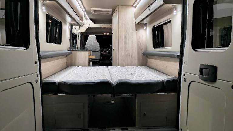 Large super king size rear bed (1890 x 1910mm) / Can convert two single beds (6ft3’’)