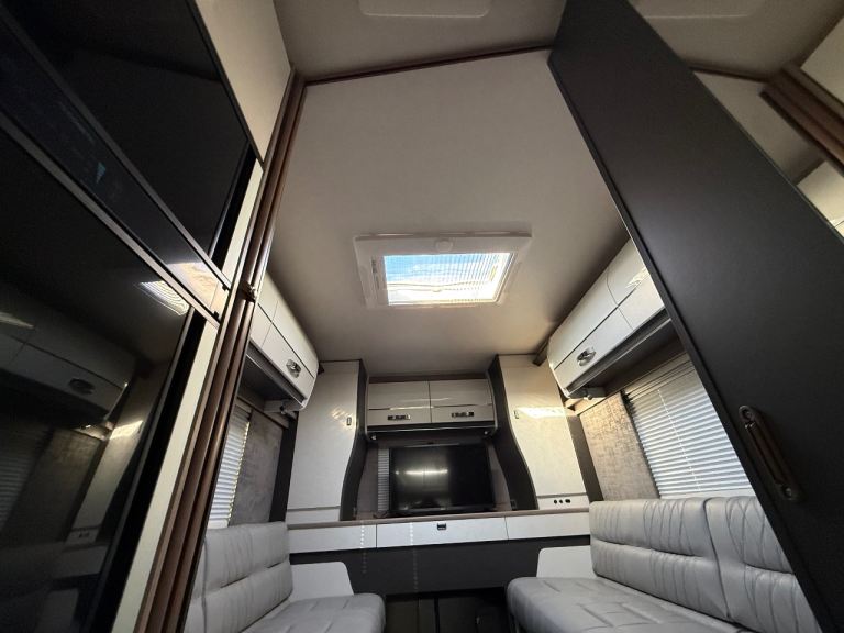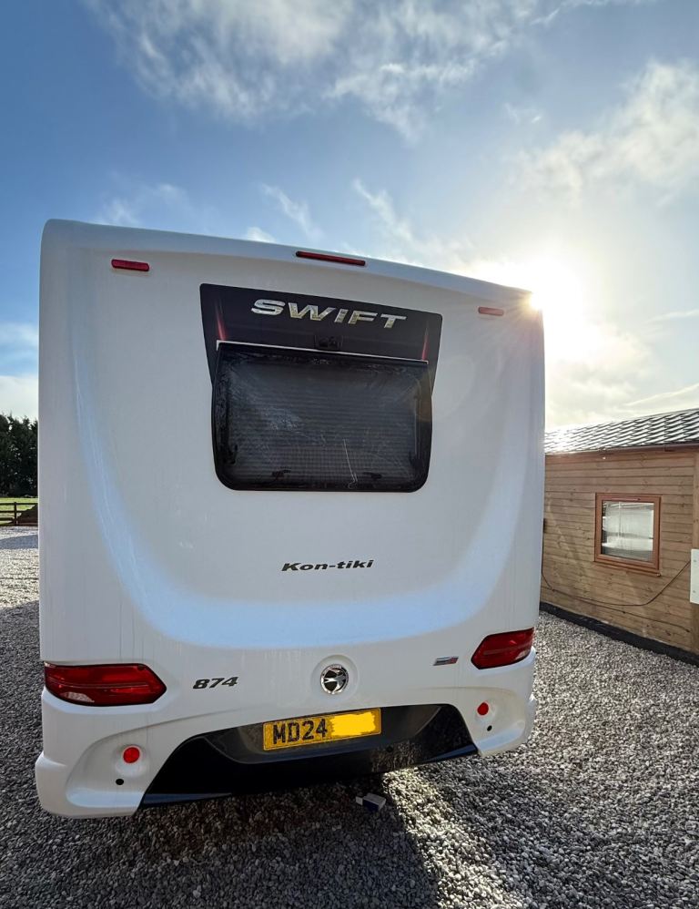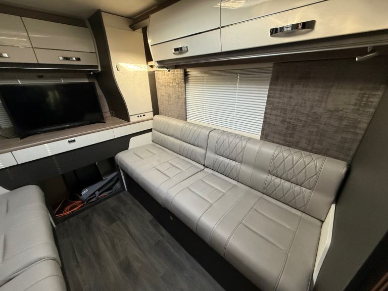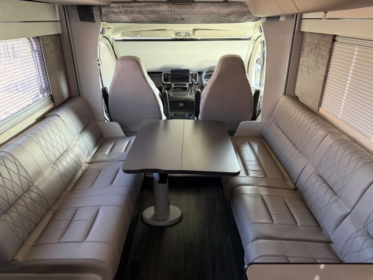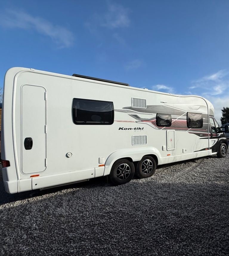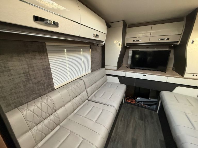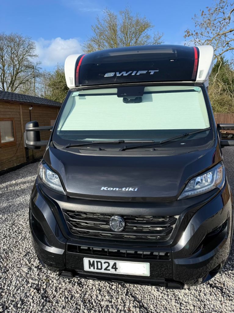 Bought new July 2024 plastic still on mattress plastic still on oven mint upgraded solar panels for off grid rear trum big air conditioner units additional tracker and ghost alarm condition swift kon-tiki 874 twin axle with upgraded 180 bhp engine and 9 speed automatic gearbox,6 berth,5 travel seats with seat belts,the interior is all leather quilted with contrast stitching,large rear lounge with removable table,electric drop down bed over the front dinette area,2 captain chairs swivel to meet the front dinette area with a electric adjustable dining table,the front dinette also converts to a large double bed,the washroom is split into two sections,one side is a spacious separate shower and adjacent to this is the toilet cassette sink with mixer tap and storage cupboards. In the middle of the motorhome you?ll find a well equipped kitchen with a 3 ring gas burner & electric hot plate, oven & grill, large fridge freezer & microwave.electric / gas heating system,on the move heating system,large media sat nav system,rear camera system,air con,cruise control,multi function leather steering wheel,electric opening sunroof,large solar panel,large roll out external awning,external barbecue point,external shower point,tow ,5 spoke polished alloys, stunning flagship motorhome hpi clear all original keys and manual had 1st habitation aws approved July 2025 warranty all up to date viewings welcome