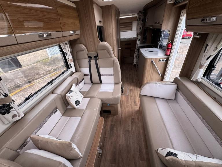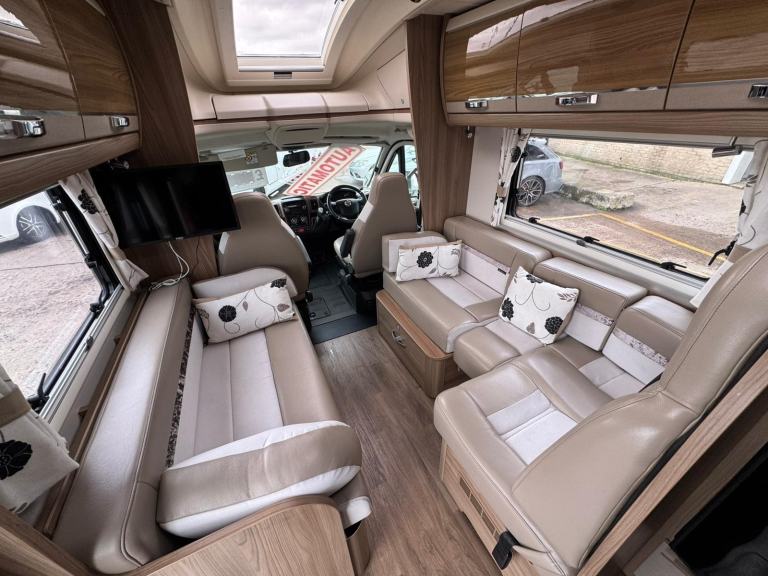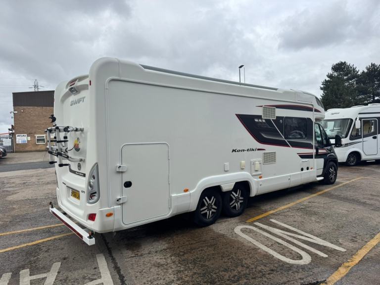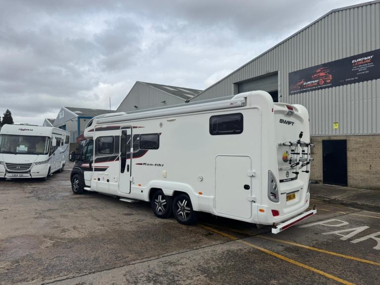 For sale stunning 2017 Swift Kon tiki 679 Black Edition, a flagship 4-berth motorhome renowned for its exceptional build quality, luxury finish, and commanding road presence. A powerful 3.0-litre 180bhp engine, smooth 6-speed manual gearbox, and a substantial 5000kg chassis, this Kon tiki is built for confident long-distance touring while offering outstanding comfort for families or couples seeking space and refinement.