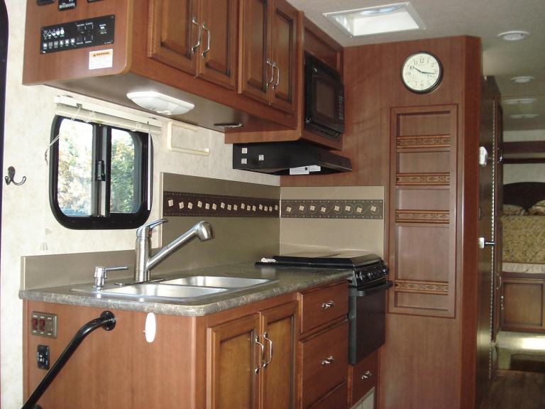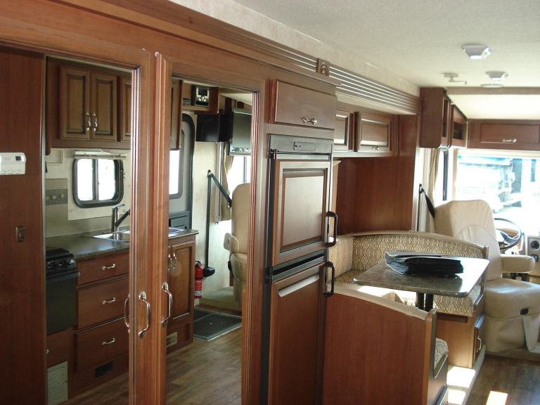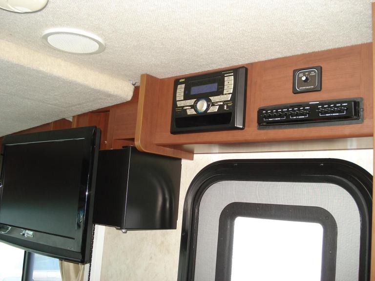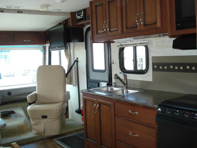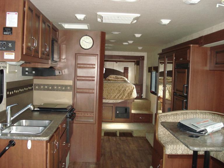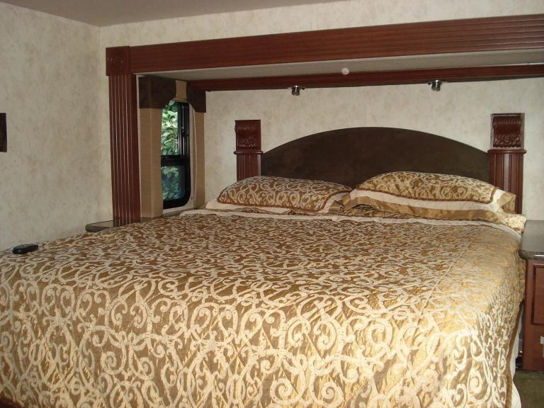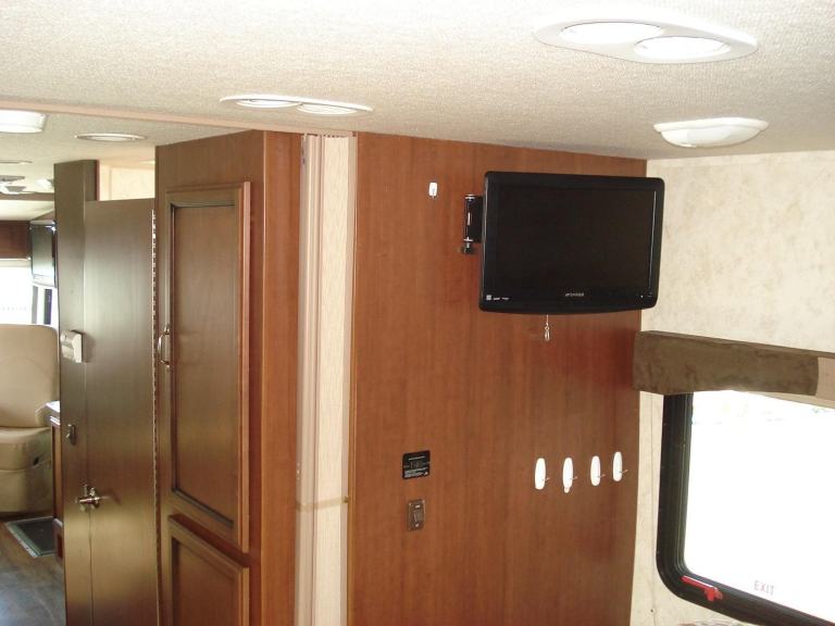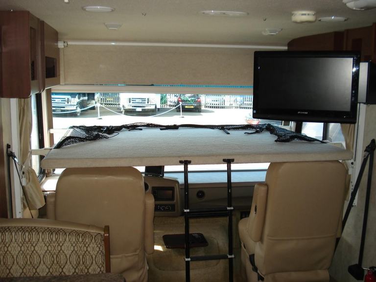 Rear Queen Island bed Fitted TV DVD player. Shower room with W.C. and vanity wash basin Ample wardrobe and storage cupboards throughout. All laminated type flooring. Kitchen with all fitted appliances. Horseshoe shaped dinette. Dual pane windows. Over cab electric drop down bed sleeping a total of 6 in X3 separate beds Fitted seat belts. Elec swivel Front T.V. Elec. Sun blind. Entertainment centre. Full UK 240v electric conversion. 110v and 12v. On board self start 4kva Onan generator. Large solar panel power.